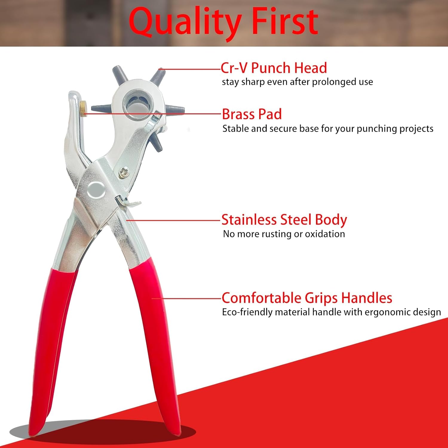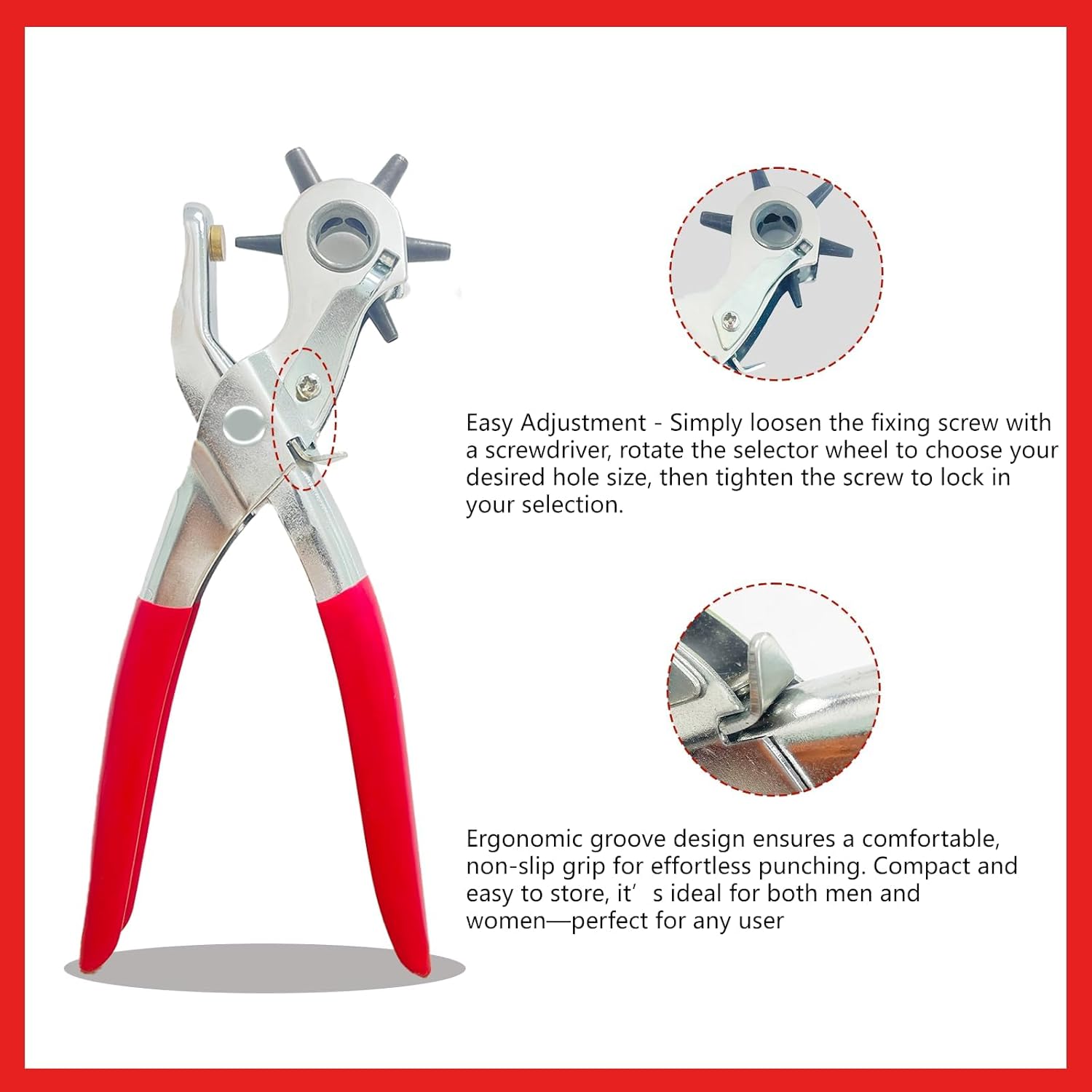 - 【Versatile Applications】 Ideal for leather belts, bags, shoes, straps, fabric, wristbands, horse tack, and various DIY leathercraft projects. A must-have hole puncher tool for crafters, repairers, and professionals.
