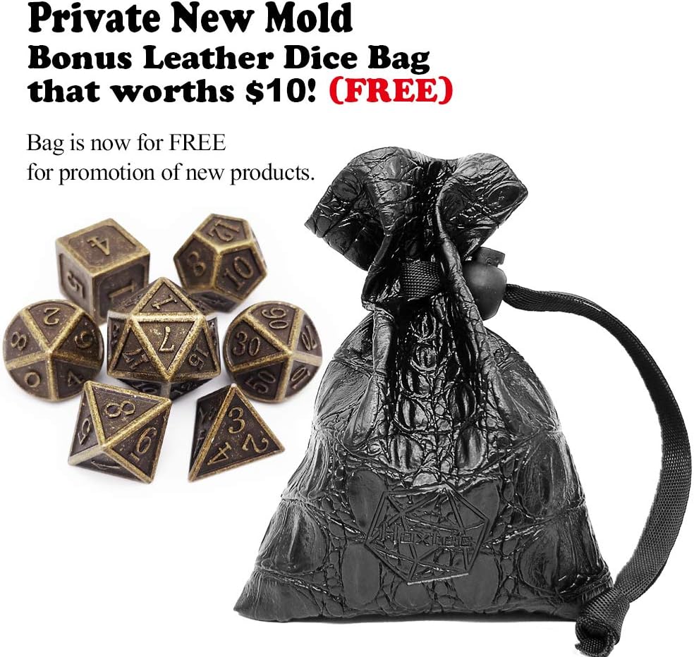 Haxtec DND Metal Dice Set 7PCS D&D Dice of D20 D12 D10 D8 D6 D4 Compatible with Dungeons and Dragons RPG Dice Games-Antique Bronze Dice