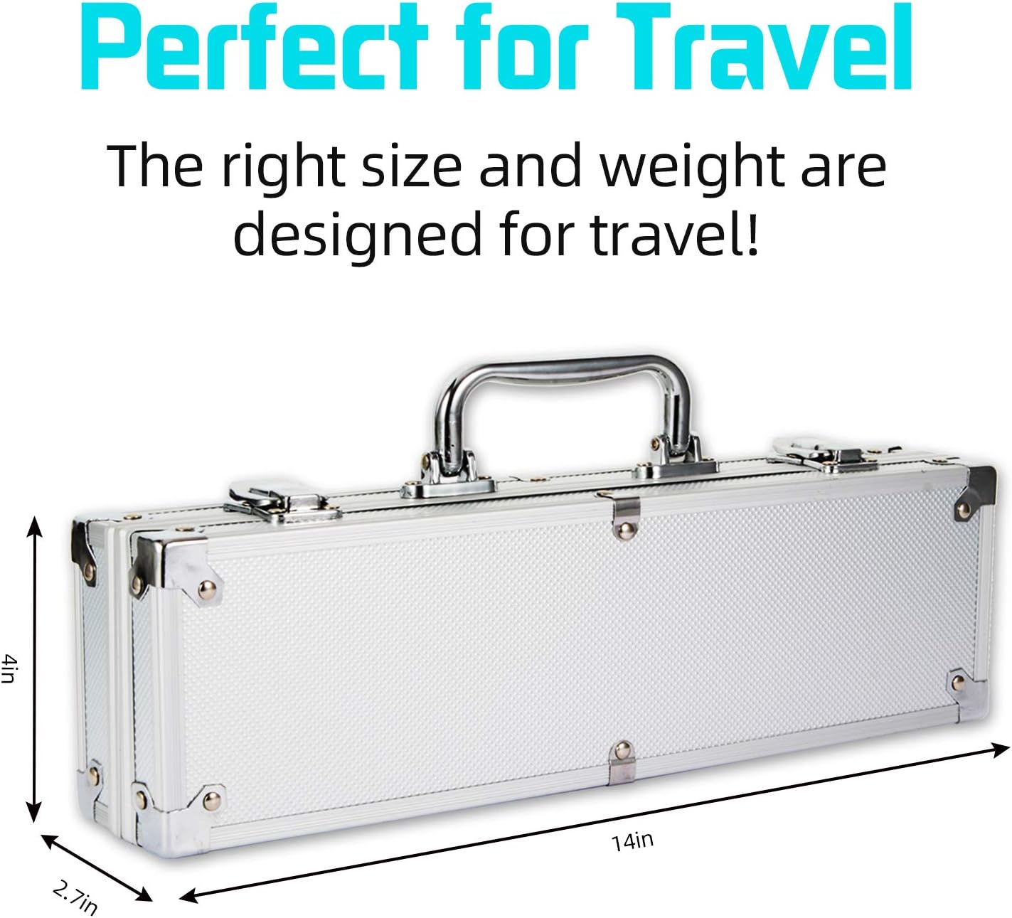 - ๐ฒ CARRYING CASE: This elegant rummy cube set comes with a sturdy aluminum case for convenient storage game racks and rummy tiles and for easy carrying of the rummy set while on the go. Take it with you to school club, park, camping and much more.