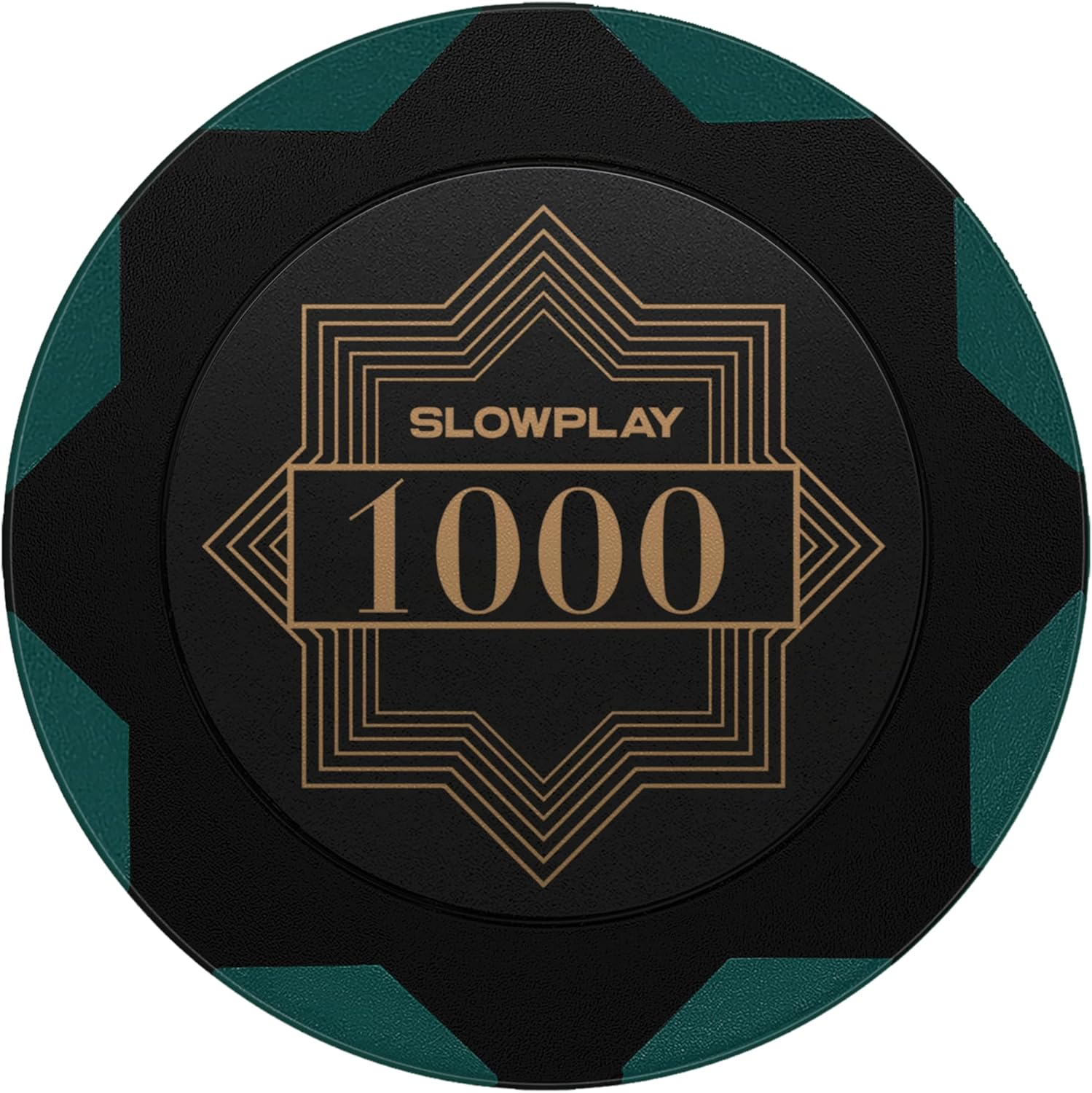 SLOWPLAY Nash Clay Poker Chips, 14 Grams Heavyweight Clay Composite, 40mm Large Chips in Bulk, Pack of 50 with Denomination of 1000