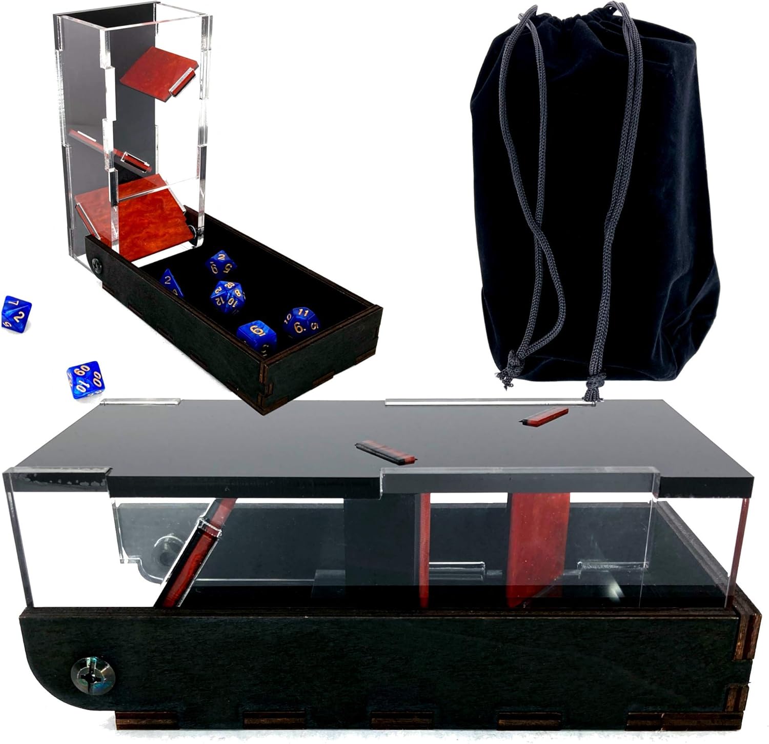 - Treat yourself to this modern interpretation of a dice tower using extra thick clear acrylic and dazzling pearlescent acrylic paddles-cut wood. The transparent sides allow the dice to be seen inside and channels a satisfying sound as the dice fall through.