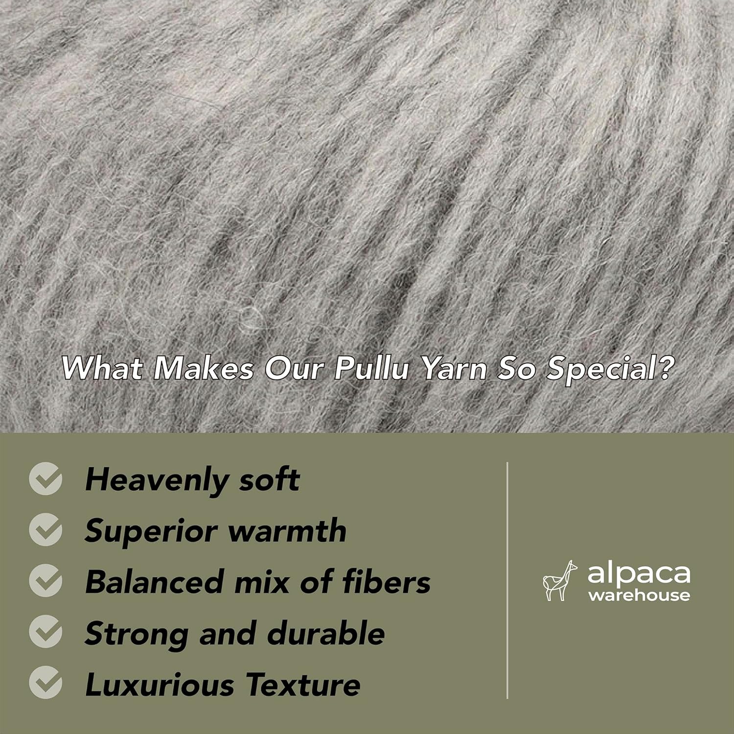 Pullu - Baby Alpaca Merino Wool Yarn Set of 3 Skeins (150 Grams) Worsted Weight - Sourced Directly from Peru - Heavenly Soft and Perfect for Knitting and Crocheting (Heather Silver Gray)