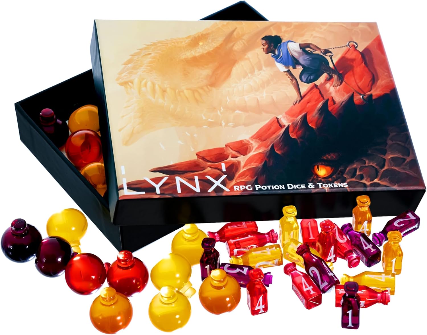 - UNIQUE & HQ DESIGN: Our potions and dices were custom designed and produced by us to look amazing, transparent, be compact to carry around and guarantee the best quality!