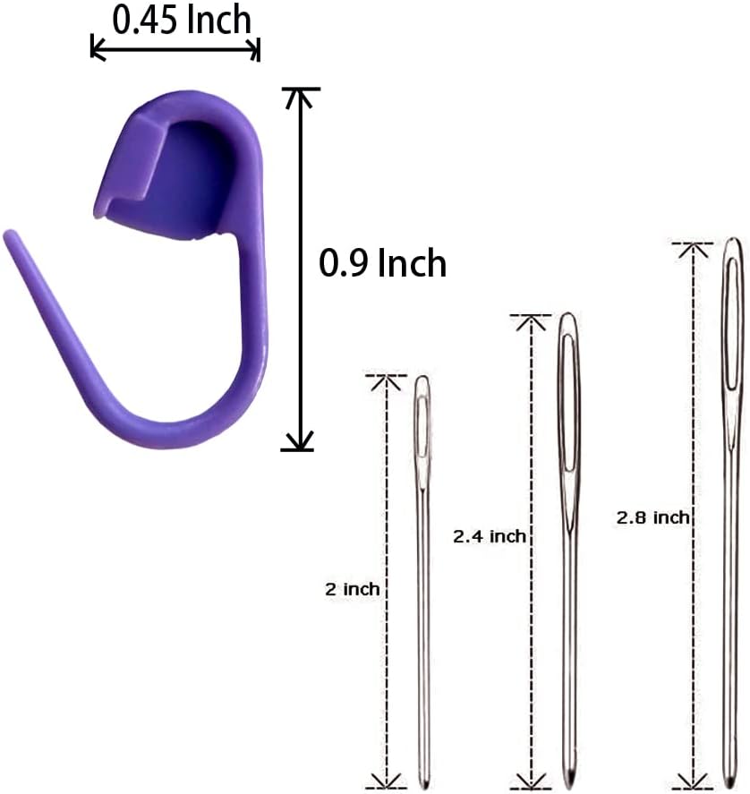 - Durable Material for Secure Use: Stitch markers are made of quality plastic (also great as plastic pins for marking crocheting), designed to hook into knitted/crocheted stitches without slipping out. 3 big eye metal needles are hard and firm, ensuring long-term use.