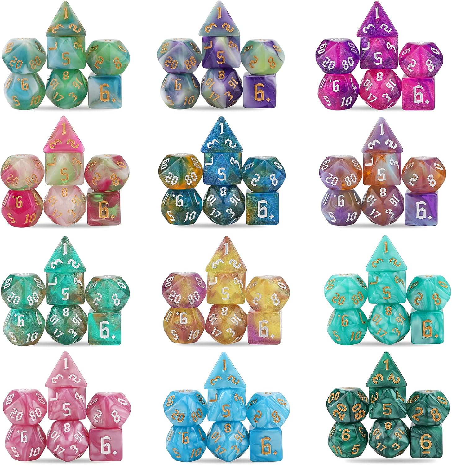 - Dnd Dice Set: 25 sets of dice(175pcs), 8 sets of unique multi-color dice, A set of 7 contains one of each of the following polyhedrals: d4, d6, d8, d10, d00, d12, and d20.