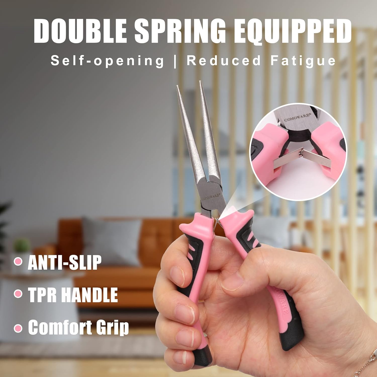 - 【SELF-OPENING SHRAPNEL DESIGN】 These pink pliers are equipped with double spring shrapnel to keep the small pliers open automatically. And the leverage design saves you a lot of effort to hold and squeeze the handles. It is easy to work with two or three fingers to carry out precision work in hard-to-reach spaces.