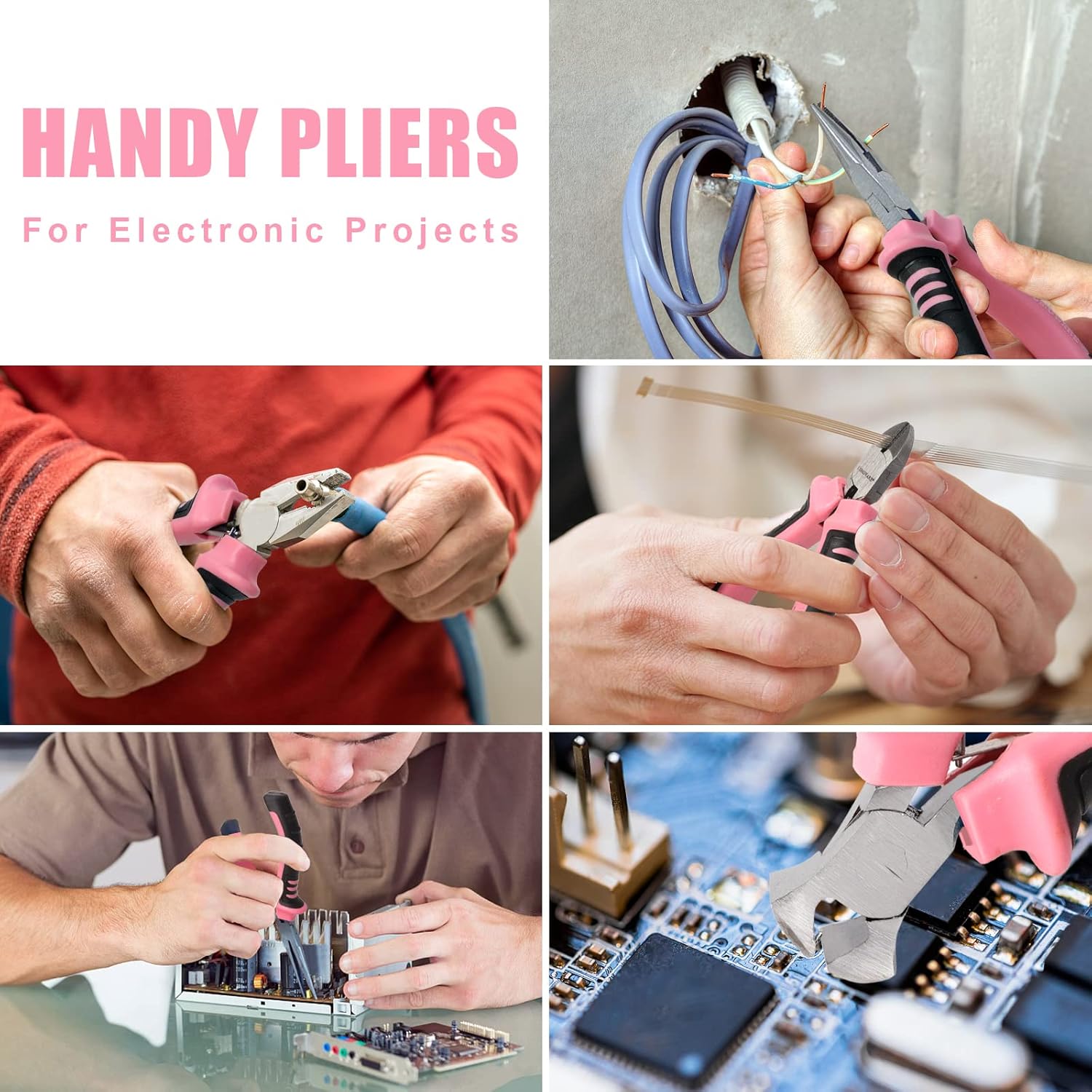 - 【WIDE APPLICATION】 This pliers set contains 6pcs pliers that can cut, strip, bend and twist iron wires easily. It is perfect for electronic repair, factory processing, machine maintenance, home appliance repair, jewelry making and DIY projects. This mini pliers set comes with a pouch for easy carrying and storage.