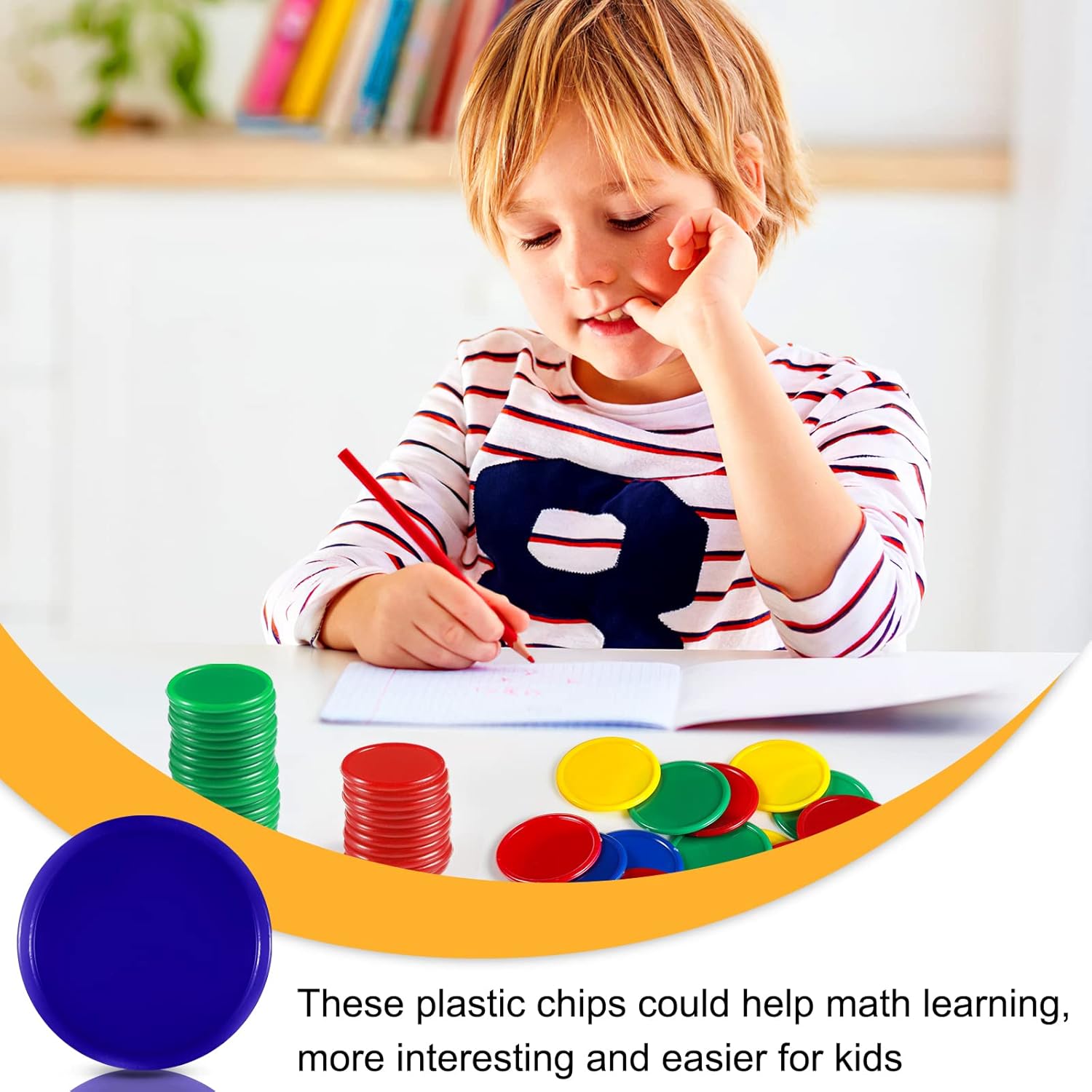 Coopay 1 1/2 Inches Plastic Poker Chips Learning Counters Disks Bingo Chip Counting Discs Markers for Math Practice and Poker Card Game Tokens, Teaching Rewards, 200 Pieces (Red, Green, Blue, Yellow)