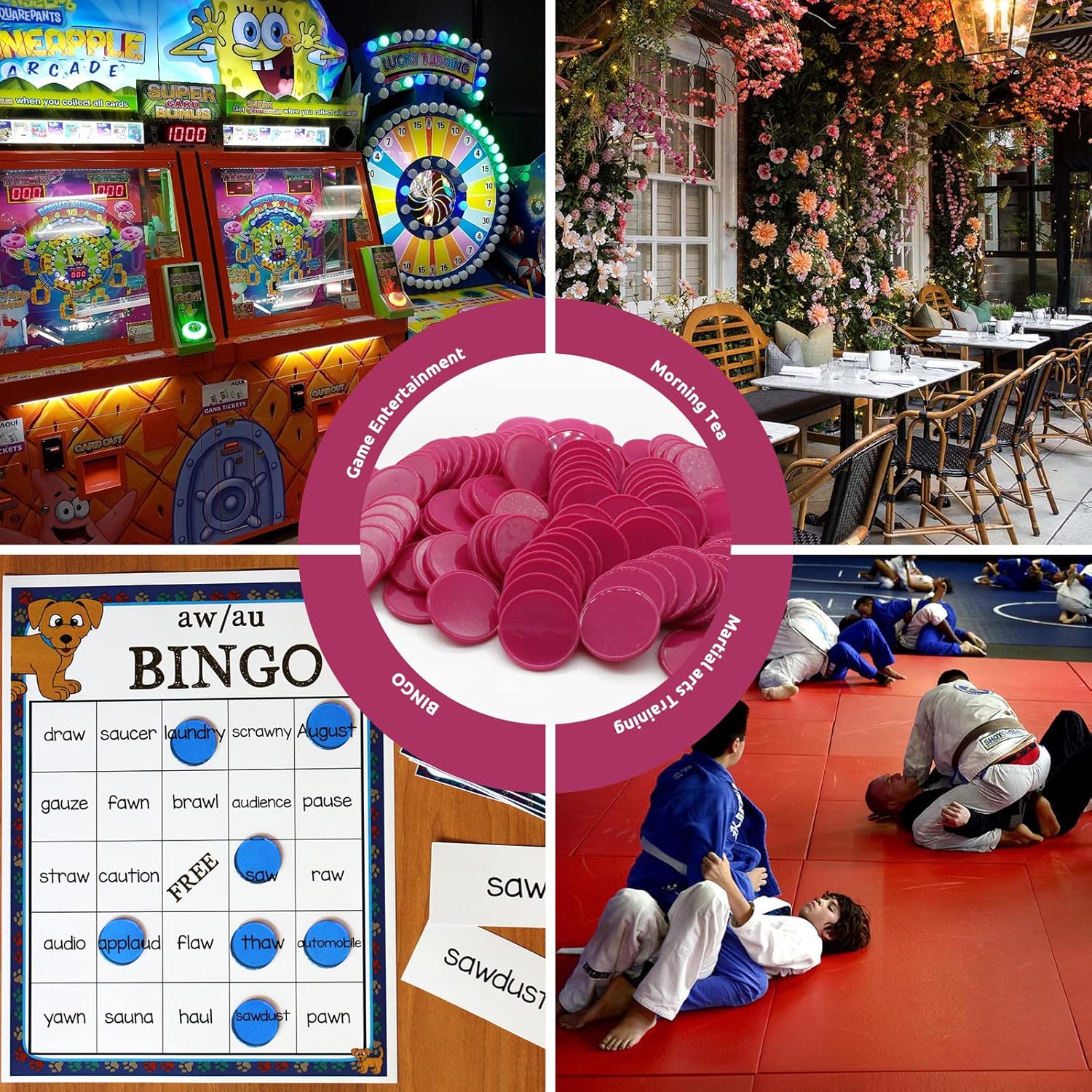 Set of 100 Opaque Plastic Learning Counters Mini Poker Chips Game Tokens with Storage Box (Mediumvioletred, 1 Inch)