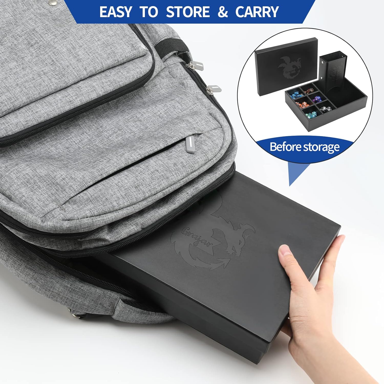- 【Super Storage Space】- The square slot measures 2" x 2" x 1.5", each slot can hold 2 sets of standard game polyhedral dice or DND miniatures, the rolling area can also hold Erasable marker pens or game dice and other game accessories besides the dice tower