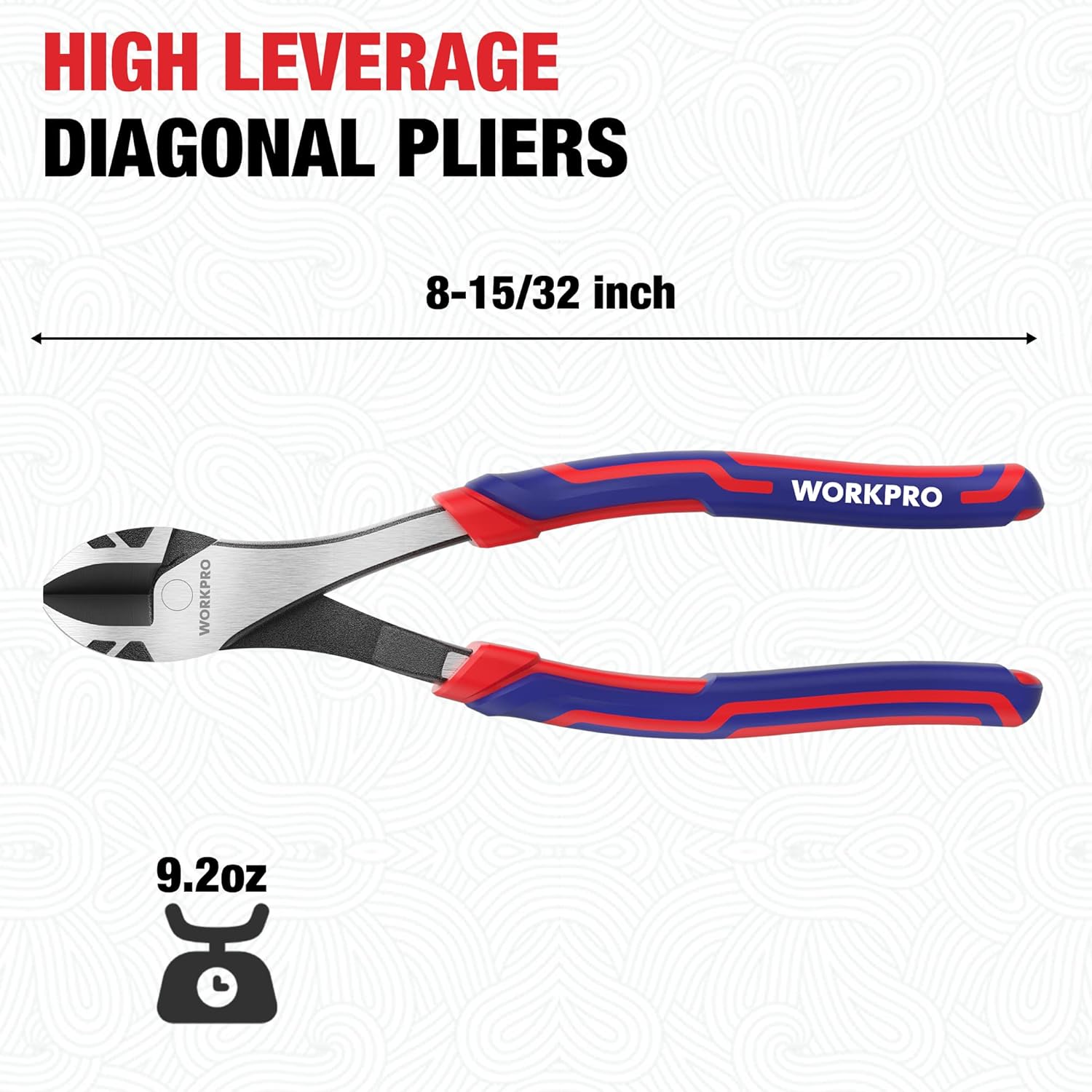 WORKPRO 8 Inch High Leverage Diagonal Pliers, Wire Cutters Heavy Duty in CRV Steel, Diagonal Cutters for Cutting Wires