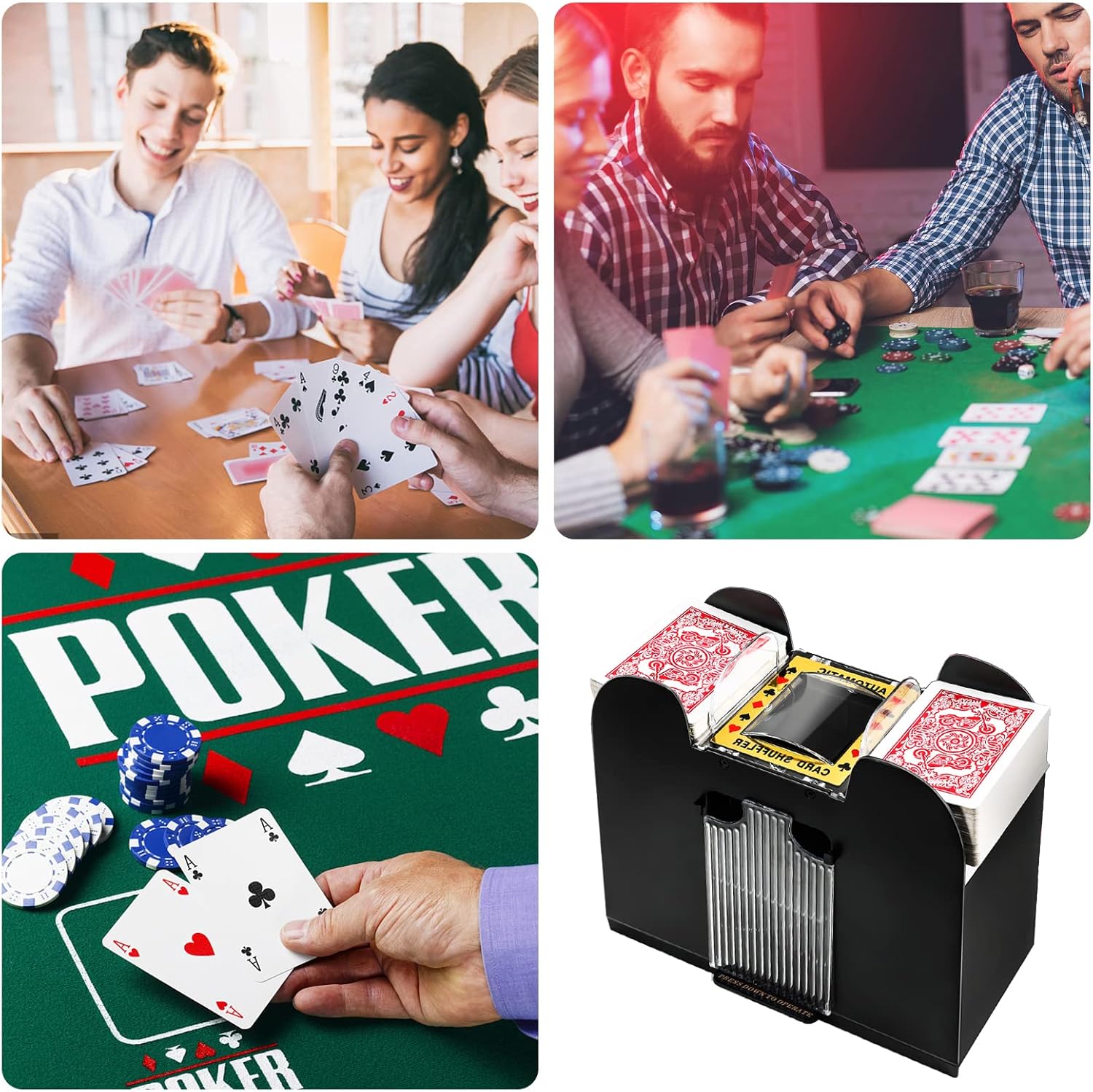 - 【More Convenient-Fully Automatic & Battery Operated】Just Want to play card more fun and convenient anywhere? Unniweei 1-6 decks automatic card shuffler is powered by 4 1.5V C batteries (Not Included). Battery powered,shuffle fast,Shuffles up to 1-6 decks cards in seconds, our automatic card shuffler can release your hand, which can makes your casino card game more fun and convenient. Our card shuffler holds up to 1-6 standard decks of cards.