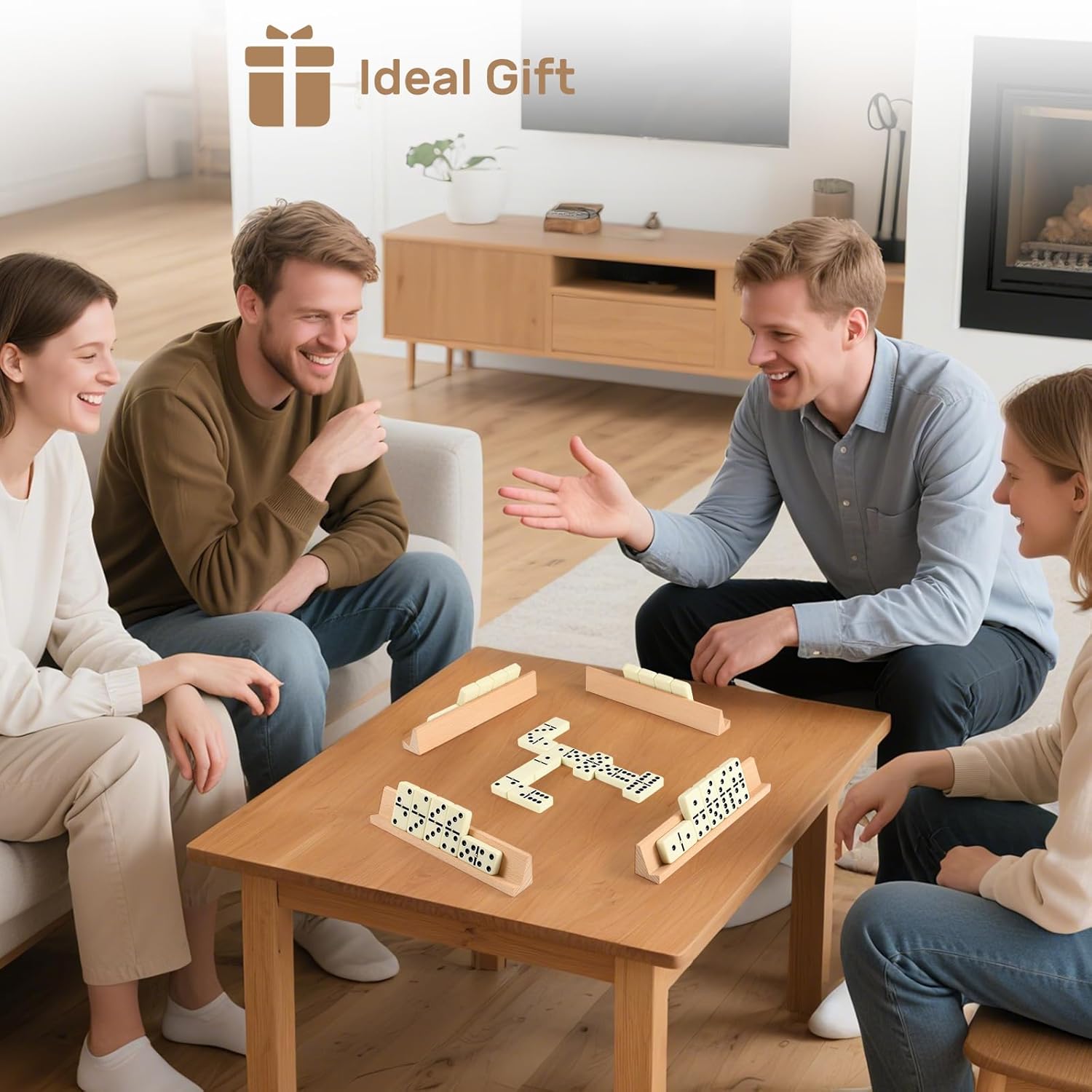 - 4 Beech Wooden Racks: The 4 wooden racks are customized for dominoes set for adults and each rack can hold 7 tiles. The racks are made of high-quality beech wood, solid surface, durable and odorless.