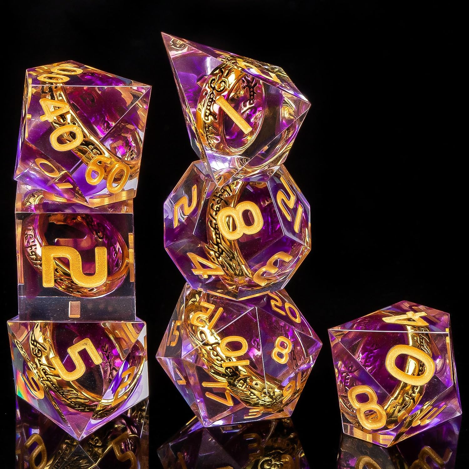 - Ring Dice set: Dice with ring theme, each sharp dice is hand sanded and polished. The numbers on the dice are clear and easy to read, with perfect details and well-made. The d and d dice will get a lot of compliments and envy