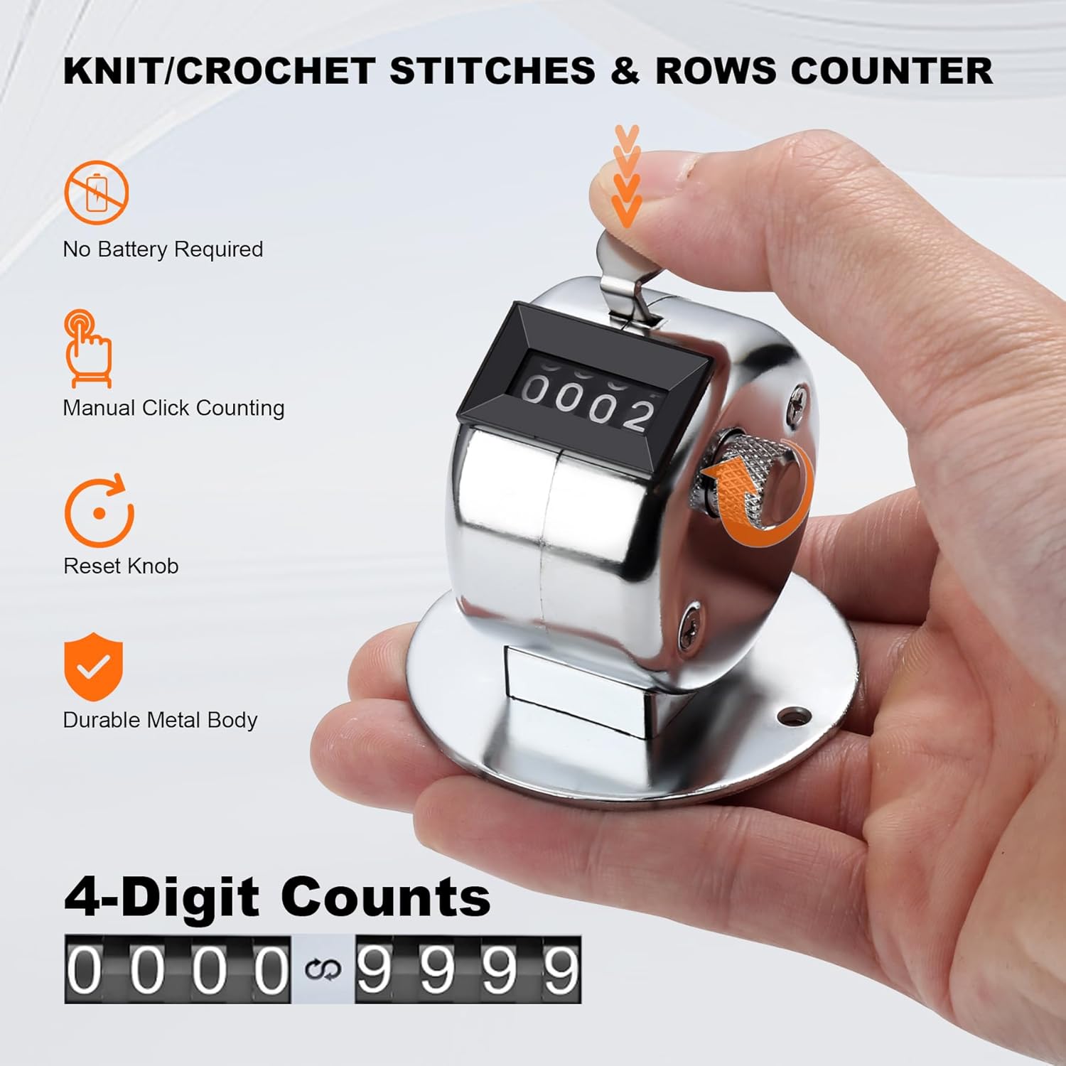 - Clicker Counter: For tracking knitting or crocheting stitches and rows, such as sports, fishing, events, warehouse, school & office, etc