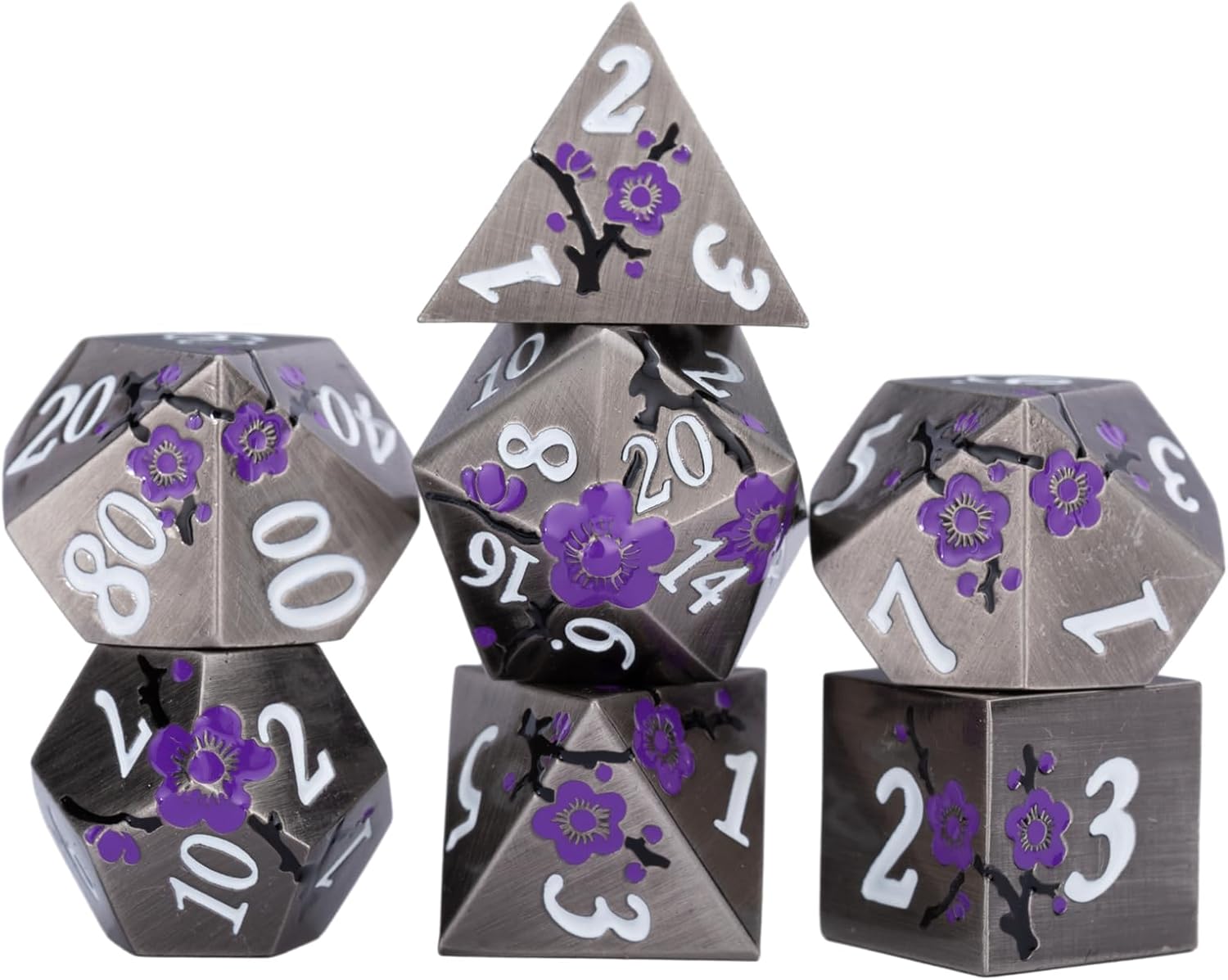 Black Metal DND Dice Set with Gift Case for Dungeons and Dragon, 7 PCS Solid Metal Dice for Tabletop Game(Antique Nickel-Purple)