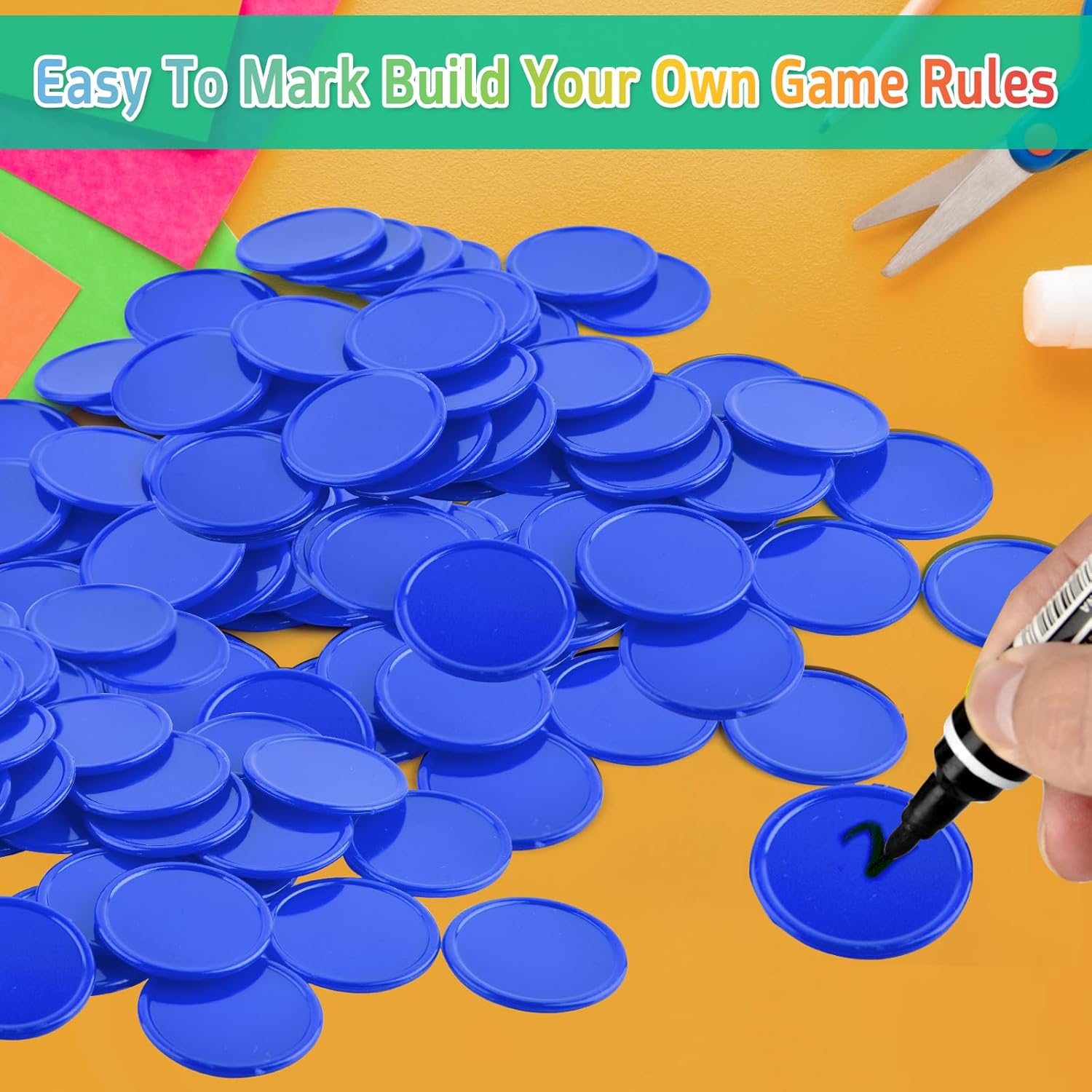 Coopay 1 1/2 Inches Plastic Poker Chips Learning Counters Disks Bingo Chip Counting Discs Markers for Math Practice and Poker Card Game Tokens, Teaching Rewards, 200 Pieces (Blue)