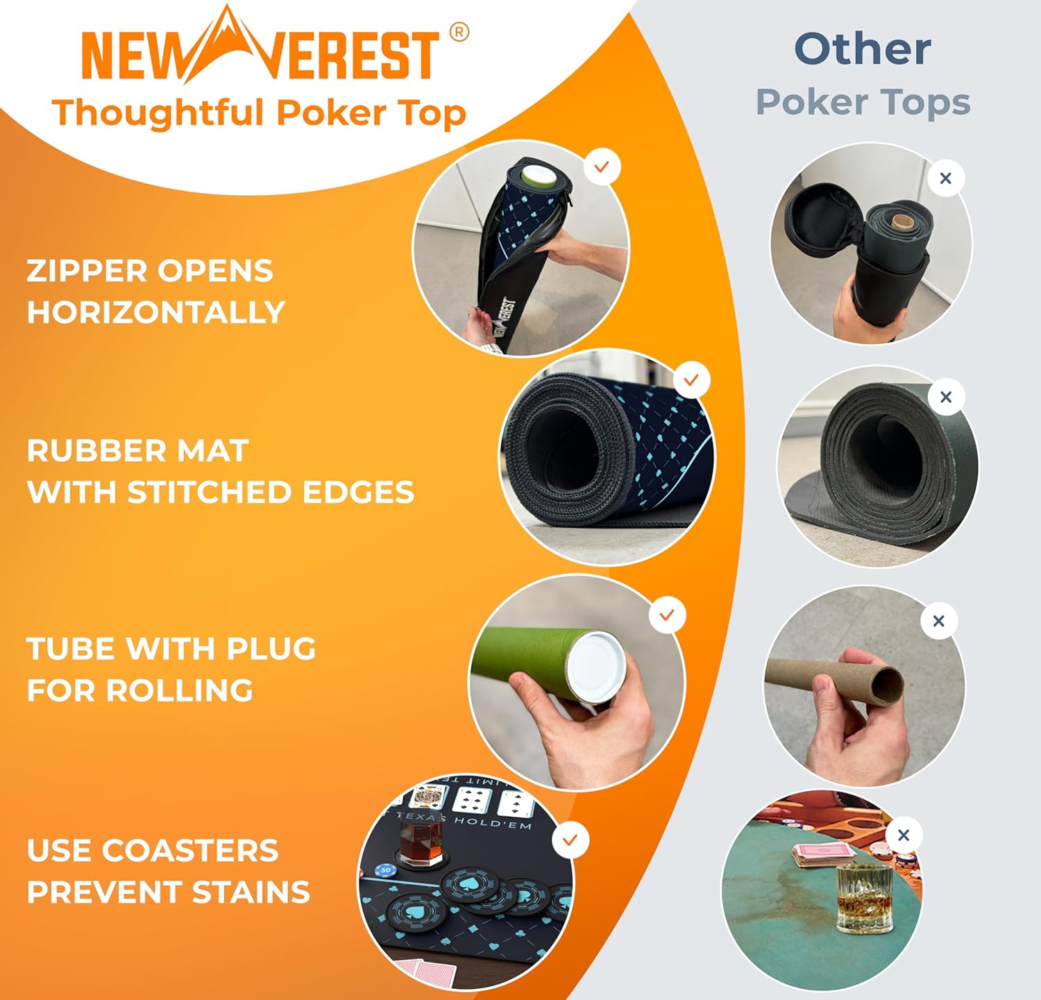 Newverest Poker Table Top 70" x 35", Texas Hold'em Poker Mat for Home Game Nights Up to 10 Players, Casino| Poker Topper Cloth for Tables in Zipper Storage Bag with 8 Coasters in Poker Gift-Ready Box