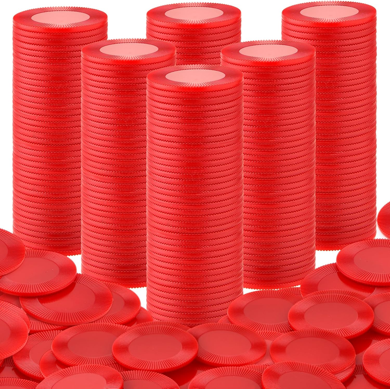 Coopay 1000 Pieces Plastic Poker Chips, Bingo Chips Bulk Learning Counters Disks Poker Card Game, Counting Markers for Math Practice, Game Tokens and Teaching Rewards, 25 mm/ 1 Inch (Red)