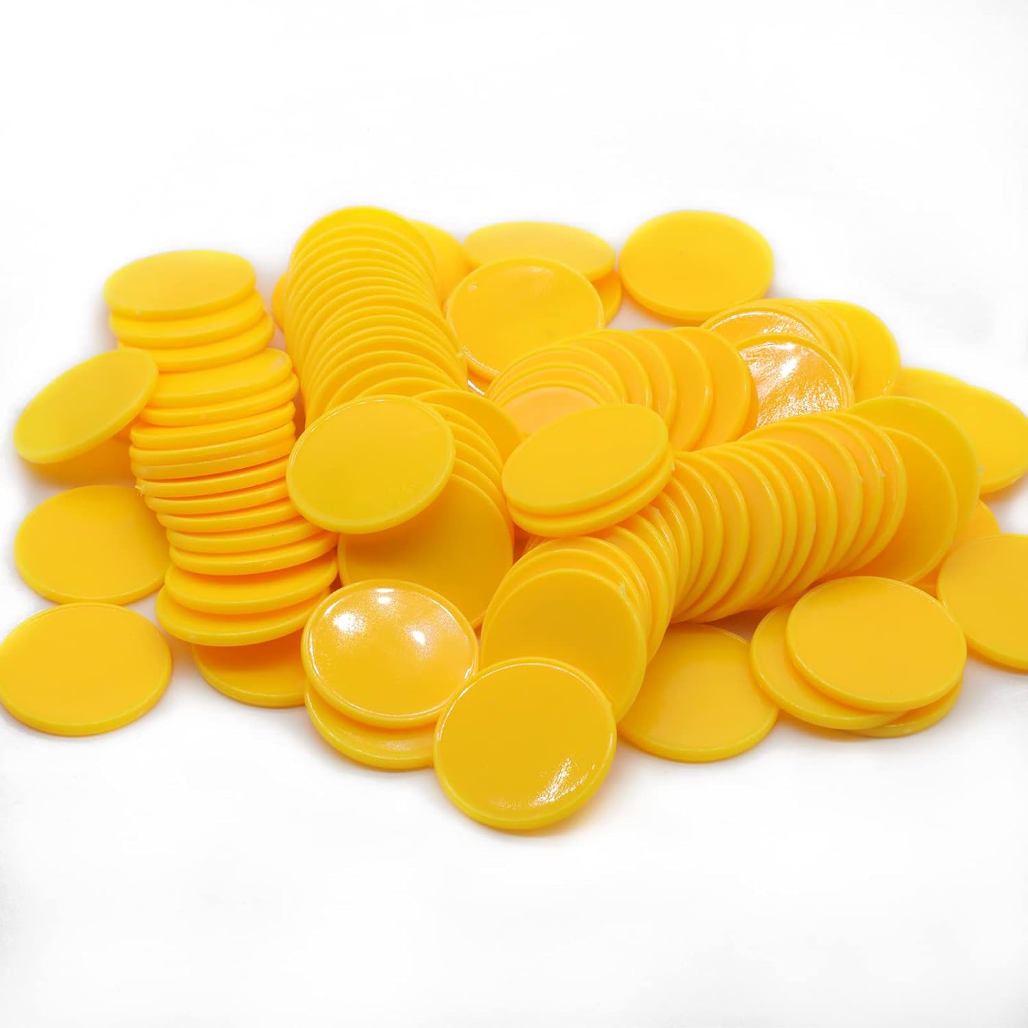 Set of 100 Opaque Plastic Learning Counters Mini Poker Chips Game Tokens with Storage Box (Yellow, 1.58 Inch)