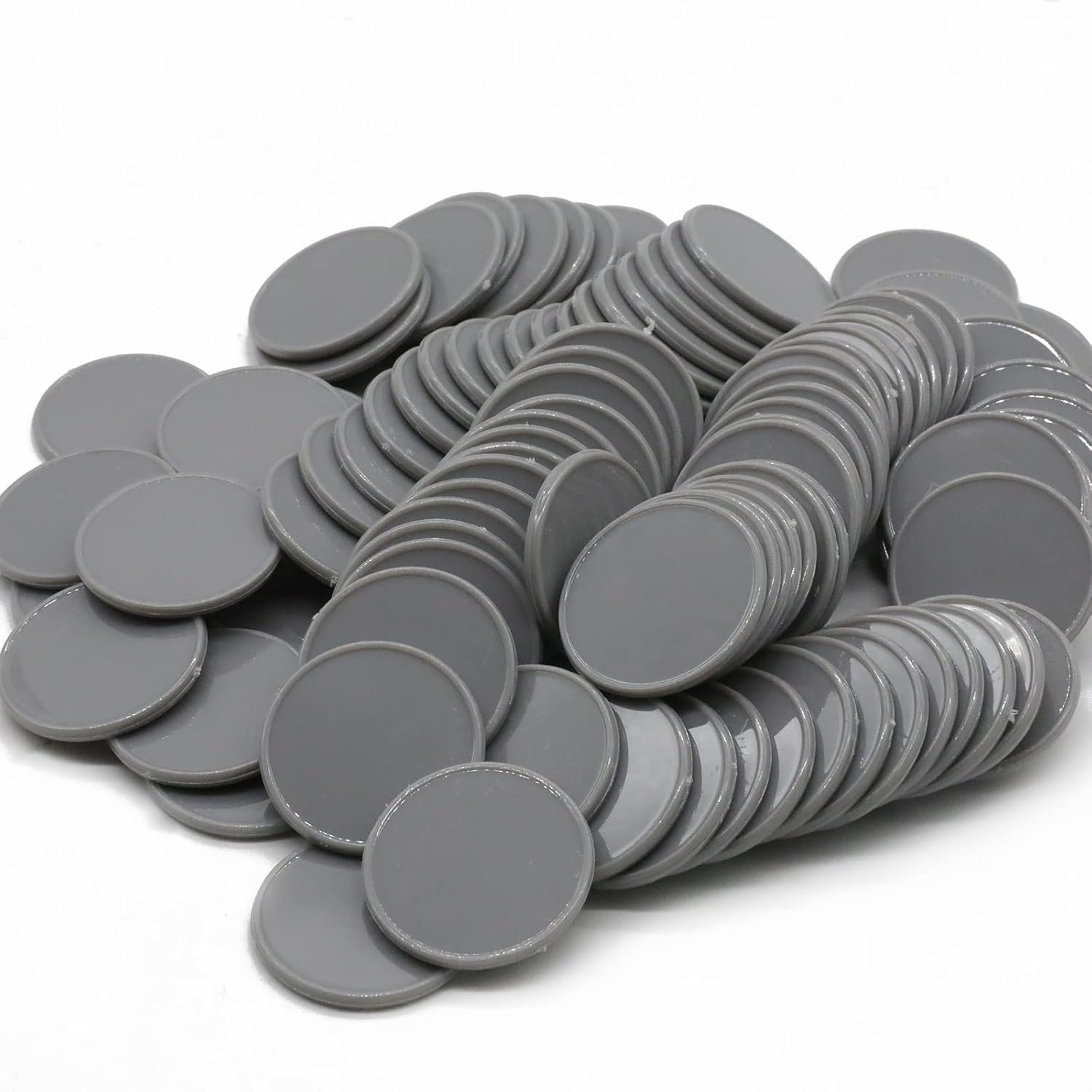 Set of 100 Opaque Plastic Learning Counters Mini Poker Chips Game Tokens with Storage Box (Gray, 1.58 Inch)