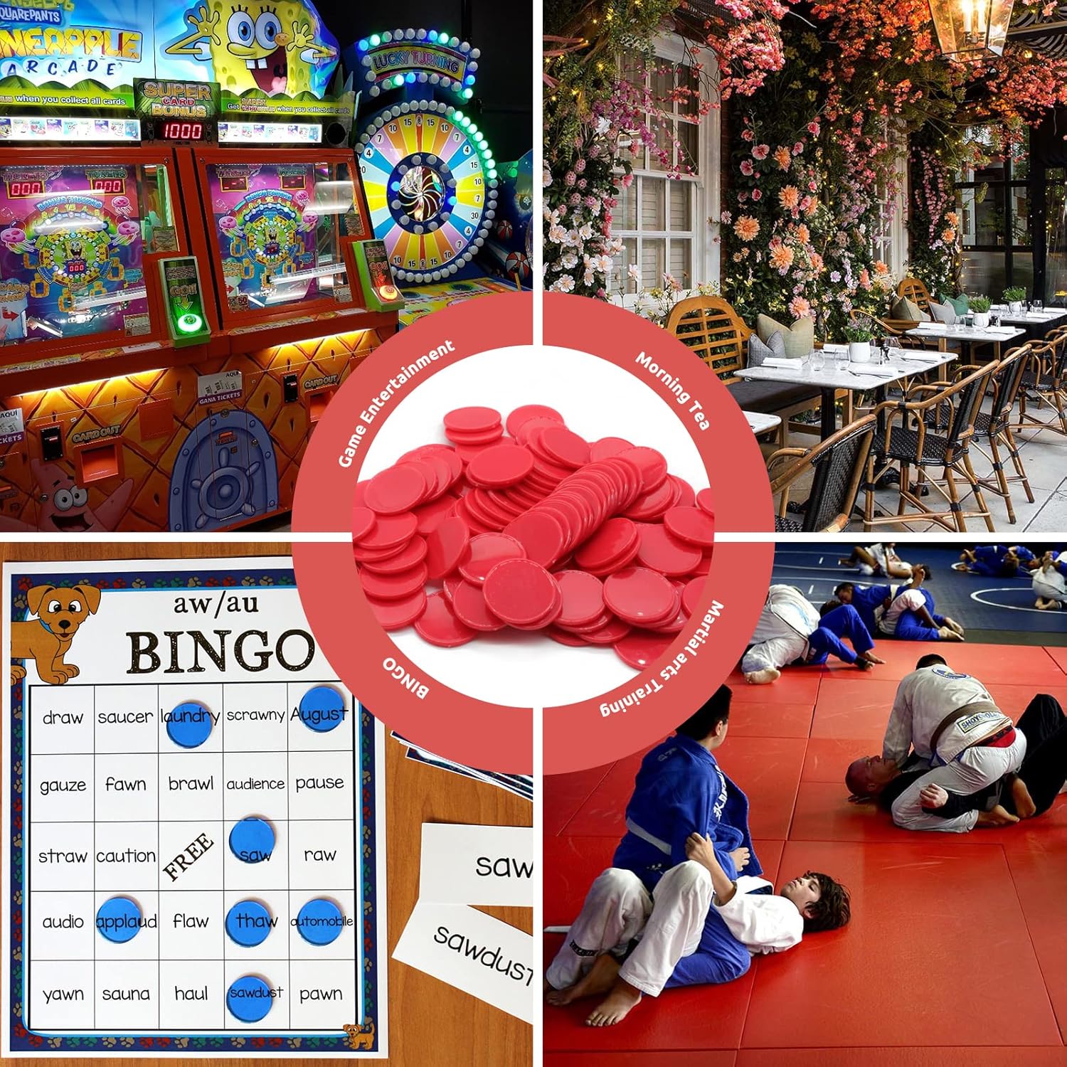 Set of 100 Opaque Plastic Learning Counters Mini Poker Chips Game Tokens with Storage Box (Red, 1.26 Inch)