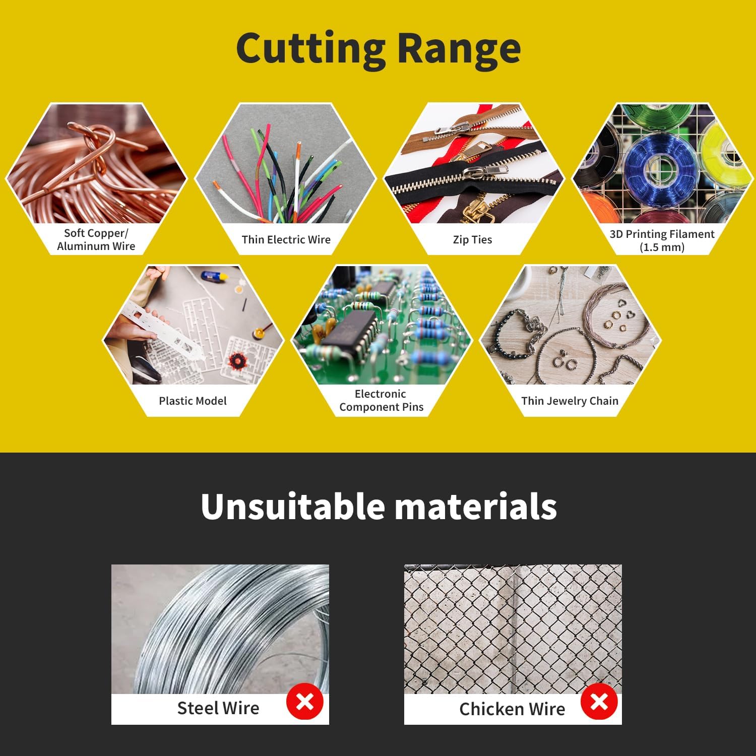 - Versatile Applications:These precision cutting pliers are suitable for a wide range of materials, including thin electric wires up to 16AWG, aluminum, copper, and soft metal wires, zip ties as well as plastics. Whether you're working on jewelry, plastic model crafting, or electronic components, our flush cutters are the go-to tool for precise and efficient cutting.