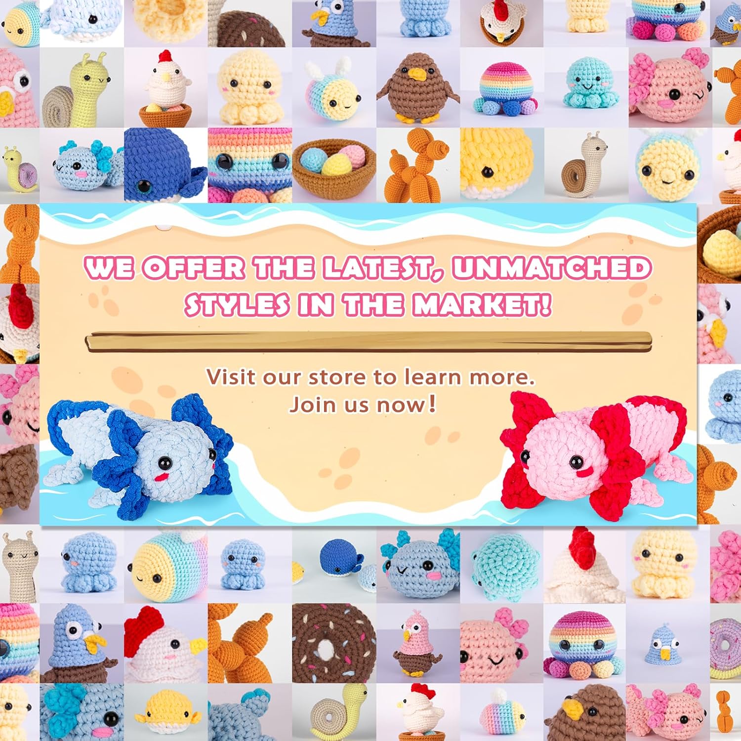 - Larger Size Crochet Family Kits: Our crochet axolotls are more than one times larger than other crochet animals available in the market, making them perfect for home decor.