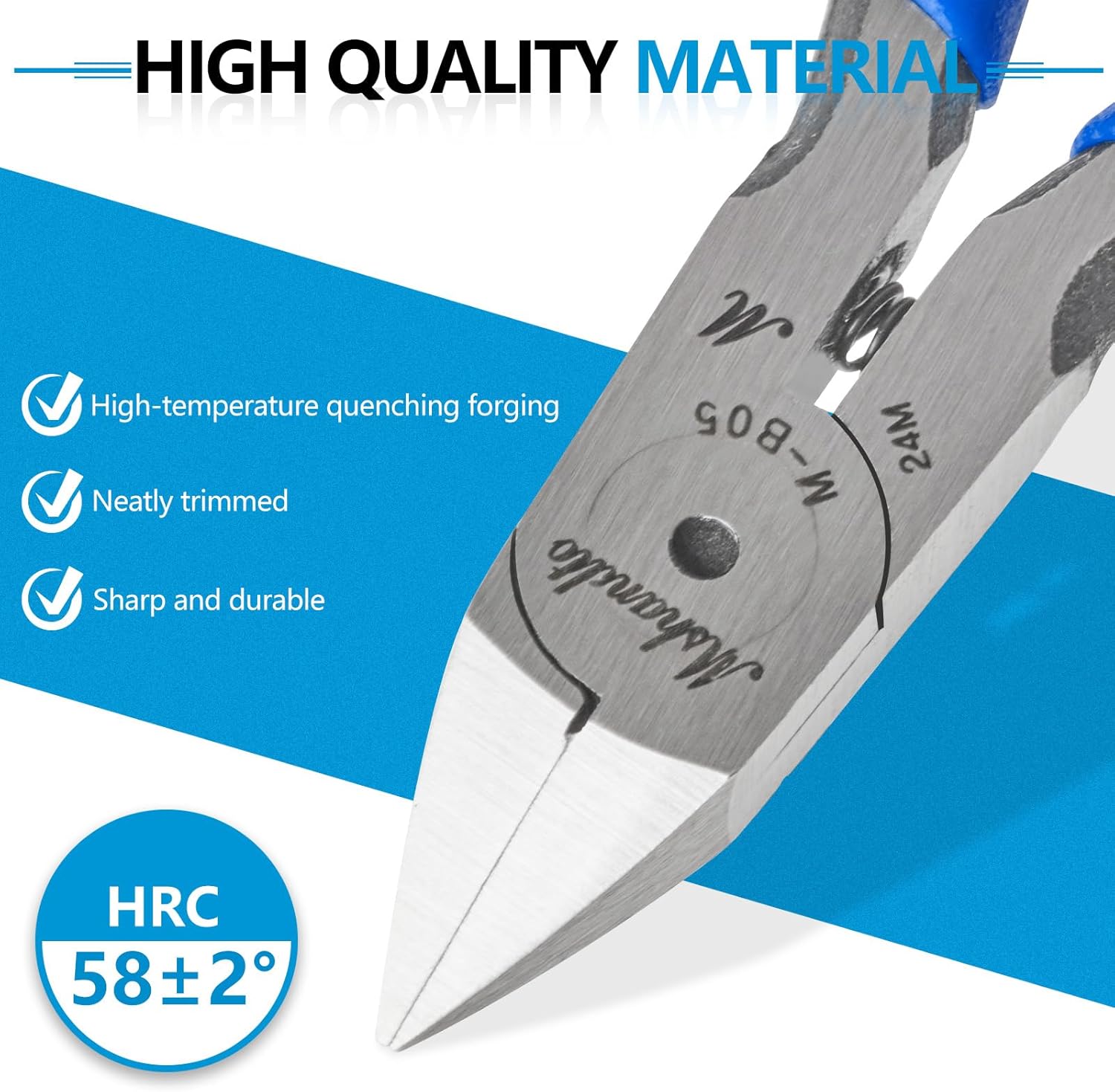 - ๐ [Premium Materials] This needle-nose plier and wire cutter is crafted from strong high carbon steel, treated at high temperatures for high strength jaws is rated at 58ยฑ2 degrees of hardness that won't easily warp. They're also coated in an anti-rust material to prevent corrosion and extend their lifespan.