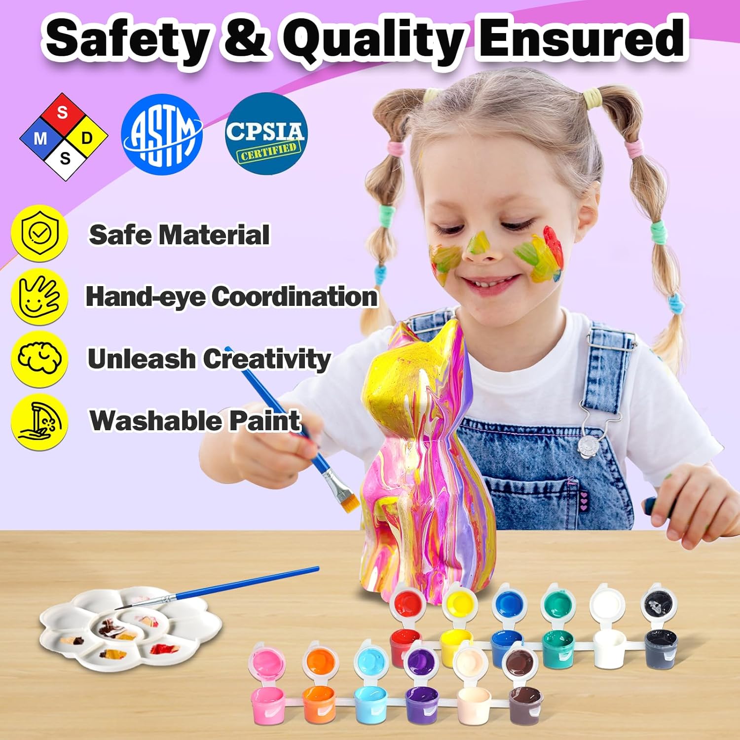 - 🌈【Safe, Non-toxic & Washable Painting Kit with CPSC Tested Report】Let your artistic flair fly without worrying about making a mess. FUNZBO washable painting kit for kids will ensure you don't ruin clothes or furniture when get creative. This arts and crafts set has gone through extensive toxicity tests to make sure every component is safe for you and your kids to use. Enjoy painting fun is important but safety always comes first.