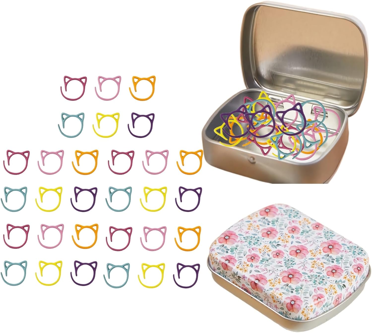 - As a Christmas gift for someone who loves to knit and crochet, the cute cat shaped stitch markers comes in a delicate little tin box with floral pattern, which would make a great gift !