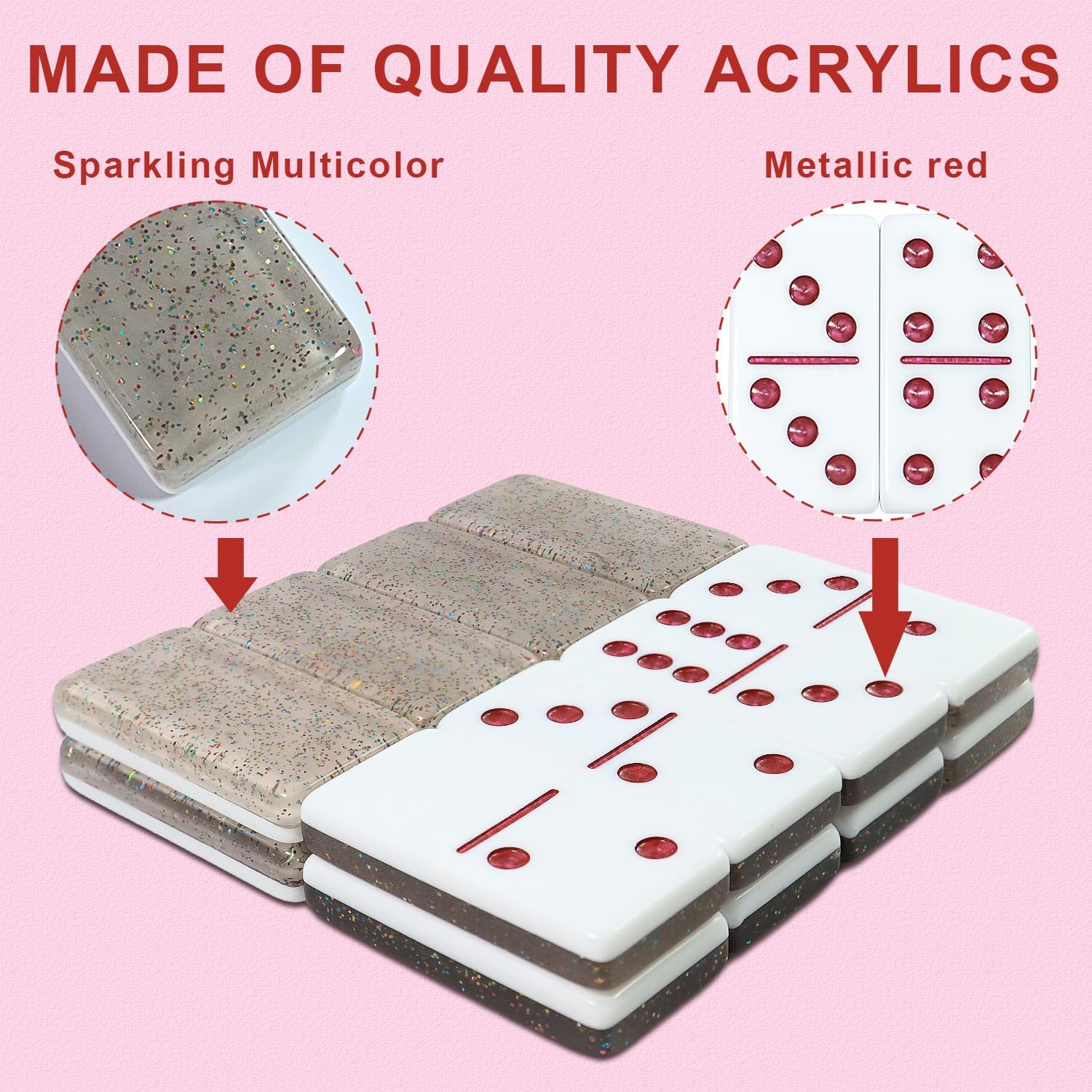 - [STURDY CONSTRUCTION] : Each pair of six dominoes are made of high-quality acrylic material, Durable and not easy to fade you can use them for years to come. Tiles dot has high-quality eco paint, It can protect the domino set from wear and tear, Additionally 7 Polyhedral Dice for Dungeons and Dragons With Pink Premium Gift Box allowing it to travel anywhere.