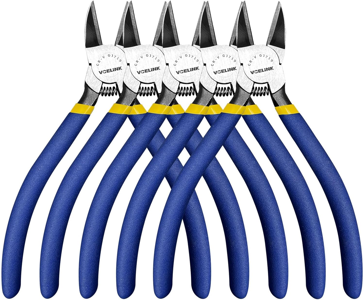 VCELINK Wire Cutters, 6-inch Side Cutter, CR-V Small Flush Cutter, 5 Pack Professional Small Wire Cutter with Spring-loaded for Artificial Flowers, Floral, Jewellery Making, and DIY Model Making