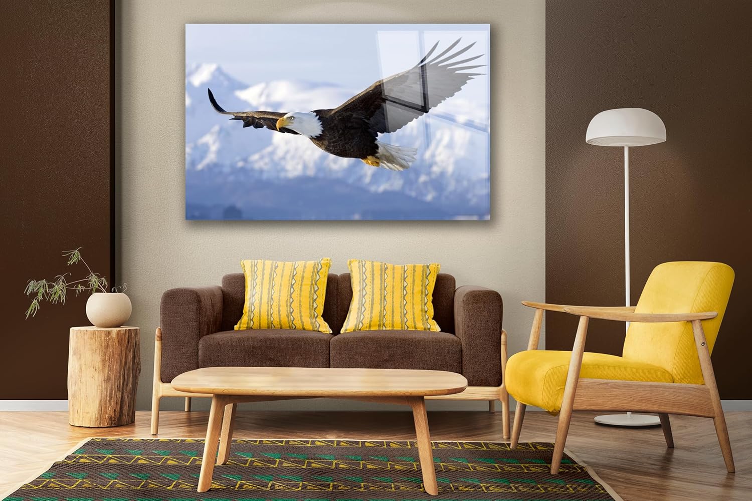 - Premium Tempered Glass: High-quality, scratch-resistant glass with a sleek, polished finish. This is a Eagle painting printed on a high quality tempered glass comes with wall mount.