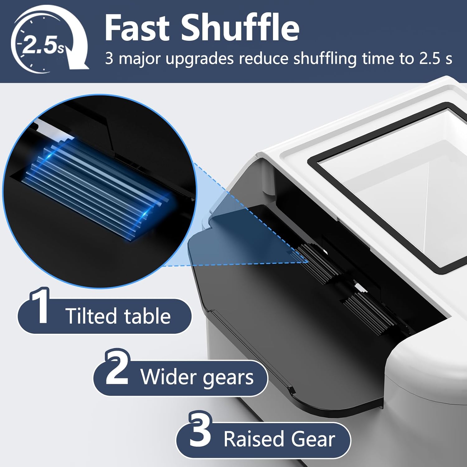 ShinePick Automatic Card Shuffler, Electric Shuffling Machine with 2000mAh Rechargeable Battery, Low Noise Card Shuffler - Automatic and Manual Mode for Poker, Phase 10, UNO, Skip-Bo