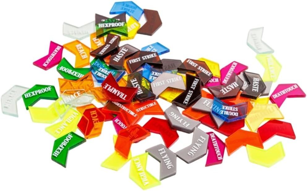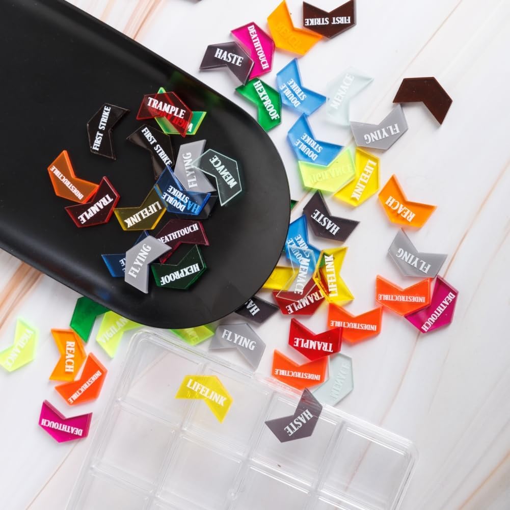 - HIGH QUALITY AND EASY TO READ: The MTG key word counters are made from high quality acrylic, semitransparent with well printed, lightweight and durable. The white words big enough to read