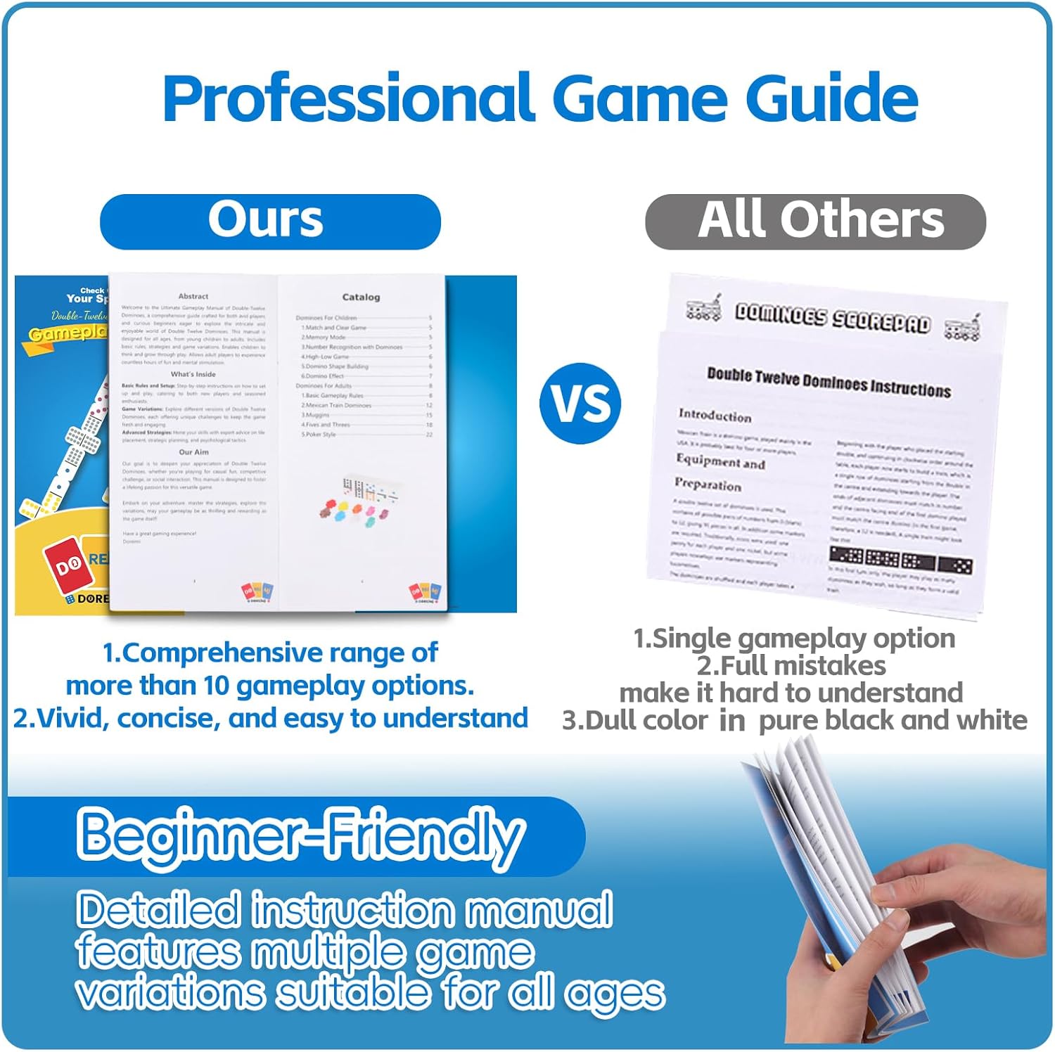 - Beginner-Friendly: Our Mexican train dominoes set includes Well-designed game manual to accommodate players of all ages and skill levels. With a variety of gameplay options clearly outlined, newcomers will find it easy to dive in, while experienced players can explore advanced strategies
