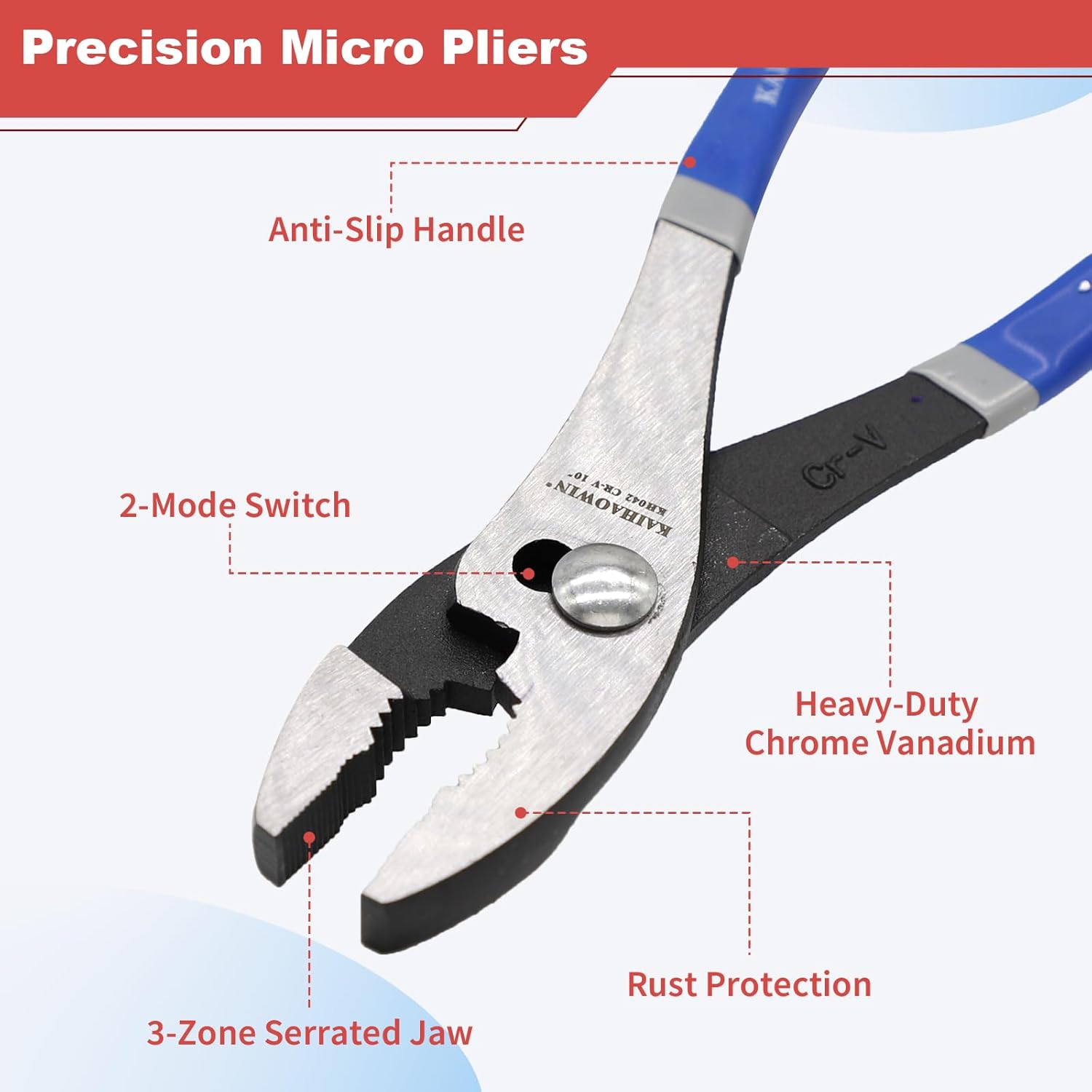 - 【5 Tools in 1 Convenient Set】 This all-in-one toolkit includes 5 essential tools: 8" needle-nose pliers, 5" long-nose pliers, and 5" precision snips, slip joint pliers,rubber mallet, providing everything you need for basic repairs and DIY projects.