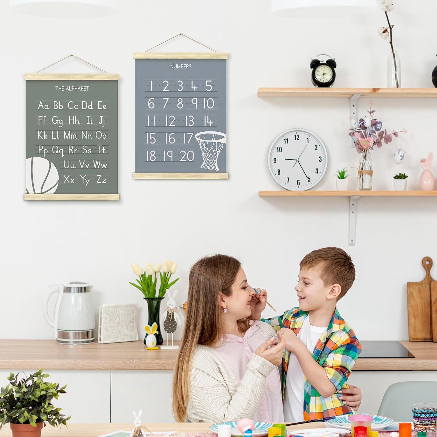 - Product Dimensions: Versatile 2 pieces per set 12 x 26 inches, alphabet banner a fun and toddler educational posters piece that features a canvas scroll with colorful ABC poster and numbers and wooden frames.