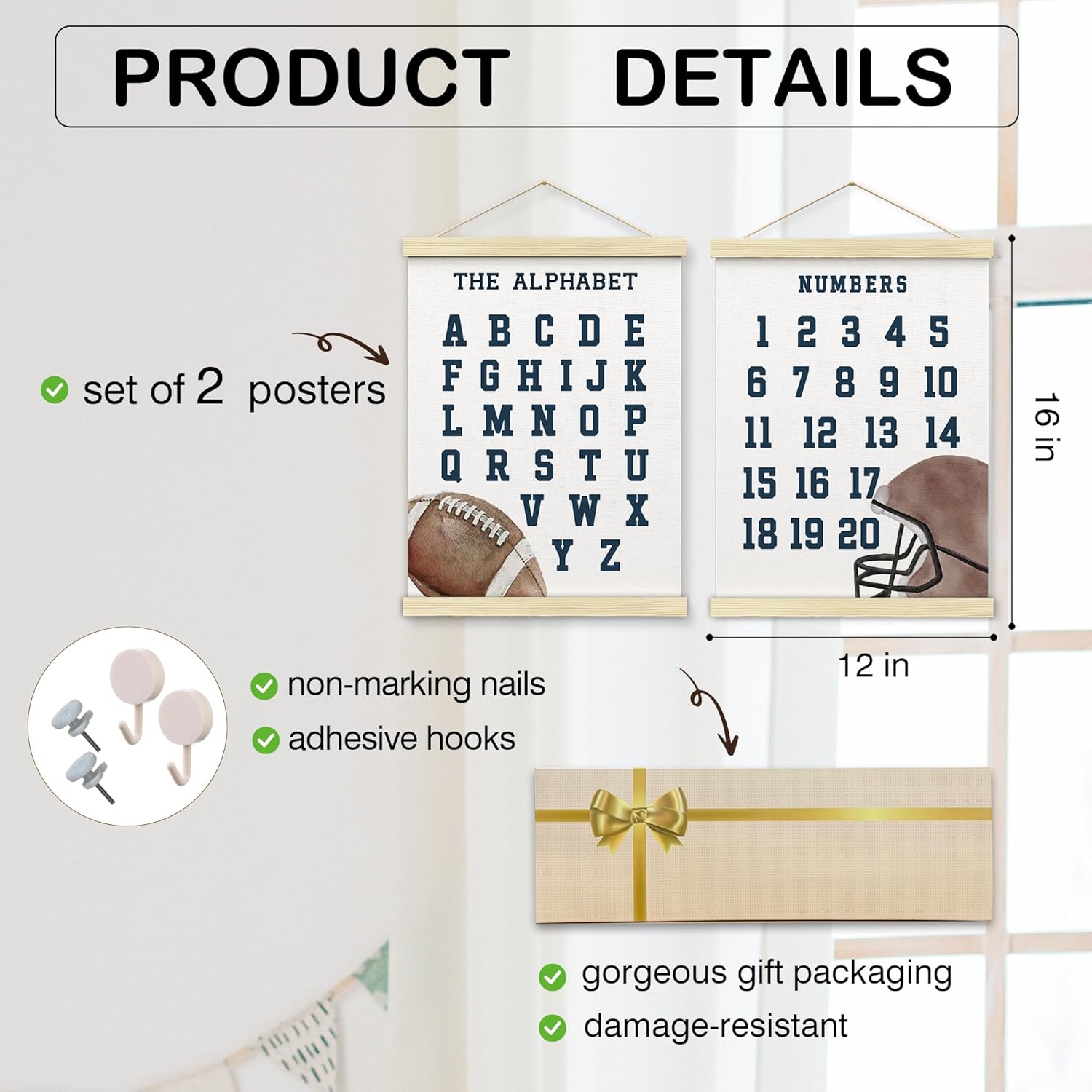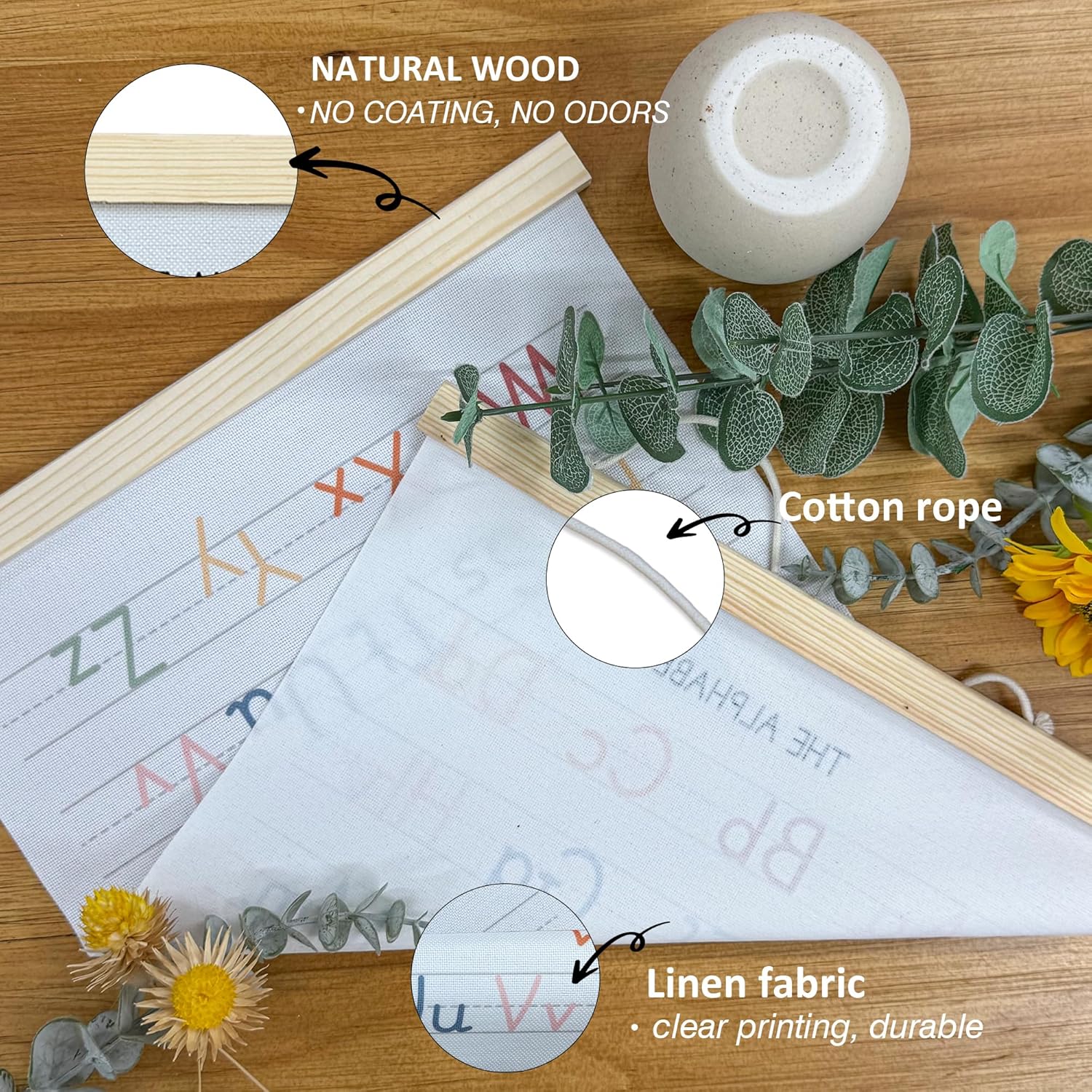 - Product Dimensions: Versatile 2 pieces per set 12 x 17 inches, alphabet banner a fun and toddler educational posters piece that features a canvas scroll with colorful ABC poster and numbers and wooden frames.