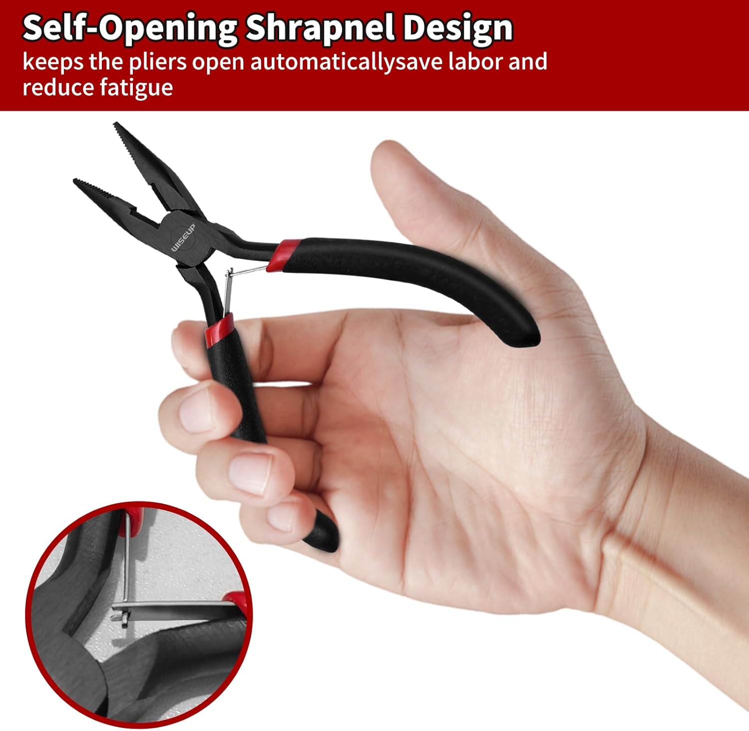 - Self-Opening Shrapnel Design:These mini pliers are equipped with a double popper that keeps the small pliers open automatically. The lever design allows you to grip and squeeze the handles with less effort