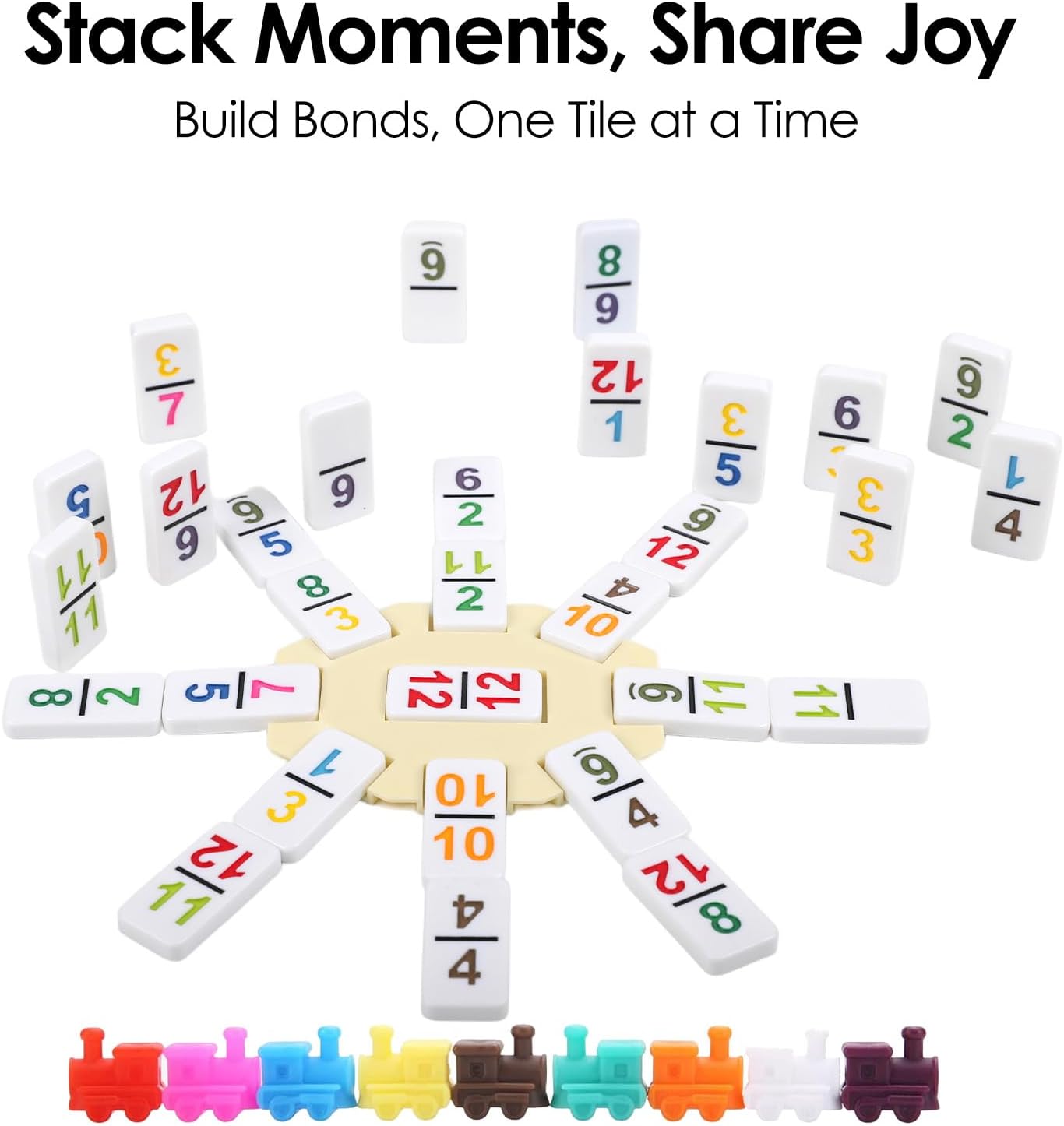 - All-in-One Travel Game Set: Includes 91 Double 12 domino tiles, 9 colorful trains, 1 hub, 8 wooden holders, 1 drawstring bag, 1 game booklet, and a sturdy EVA case. Perfect for 2–8 players on the go