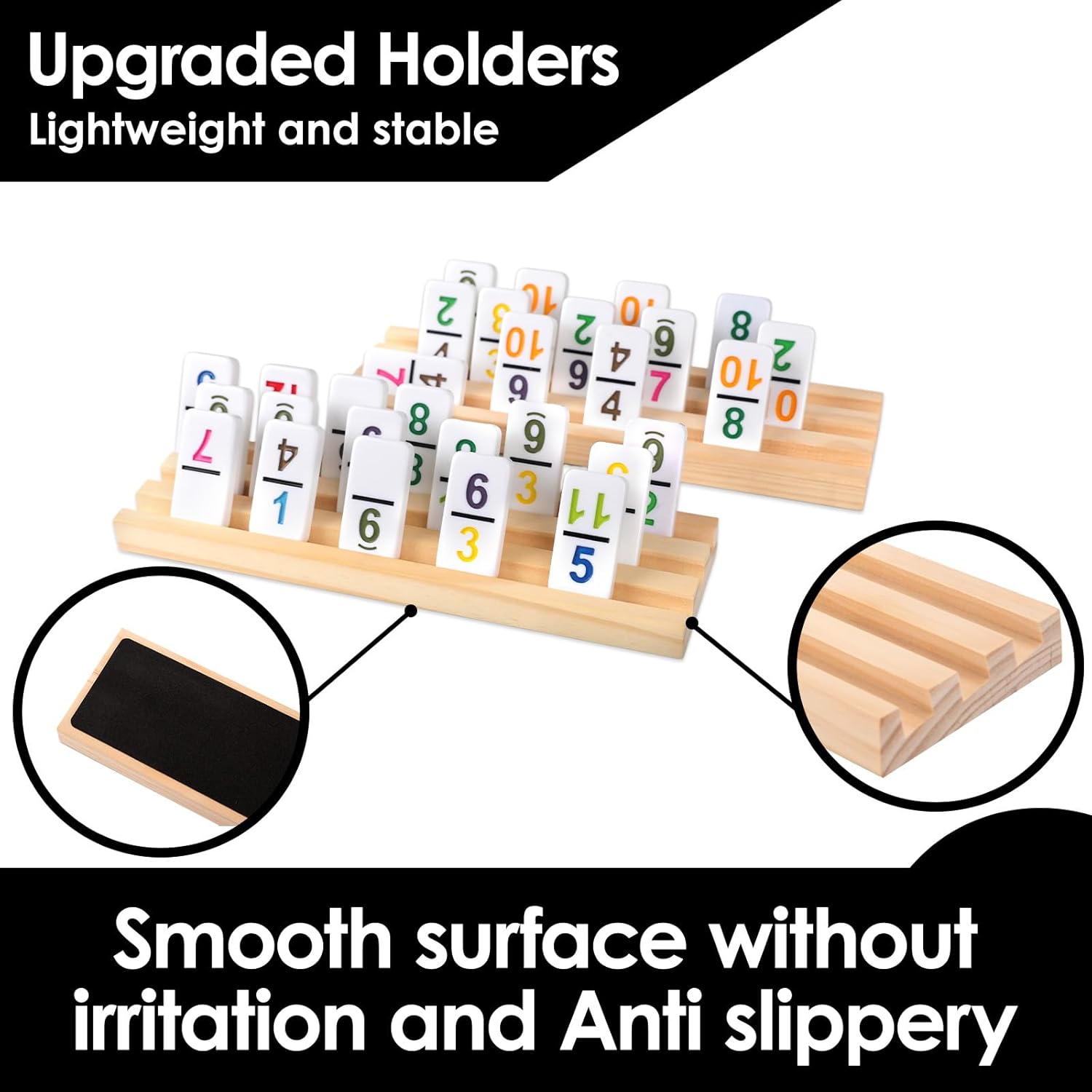 - 8 Wooden Holders: This set includes 8 solid wood holders, each with 3 angled slots to securely hold domino tiles upright or sideways. Track your game layout effortlessly and plan your moves—no manual adjustments or tile concealment needed