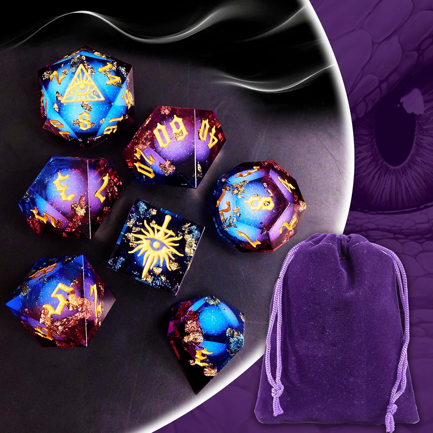 - Liquid Core Dice Set: Each set includes 7 dice, featuring D4, D6, D8, D10, D12, D20, and D%.