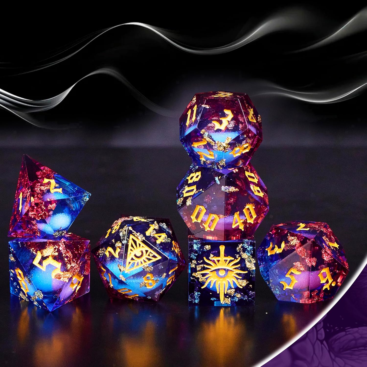 The Eye of Mystery Liquid Core DND Dice Set – Unique Resin Dice Set for Dungeons & Dragons – Red Blue Galaxy Dice Set for D&D Gifts