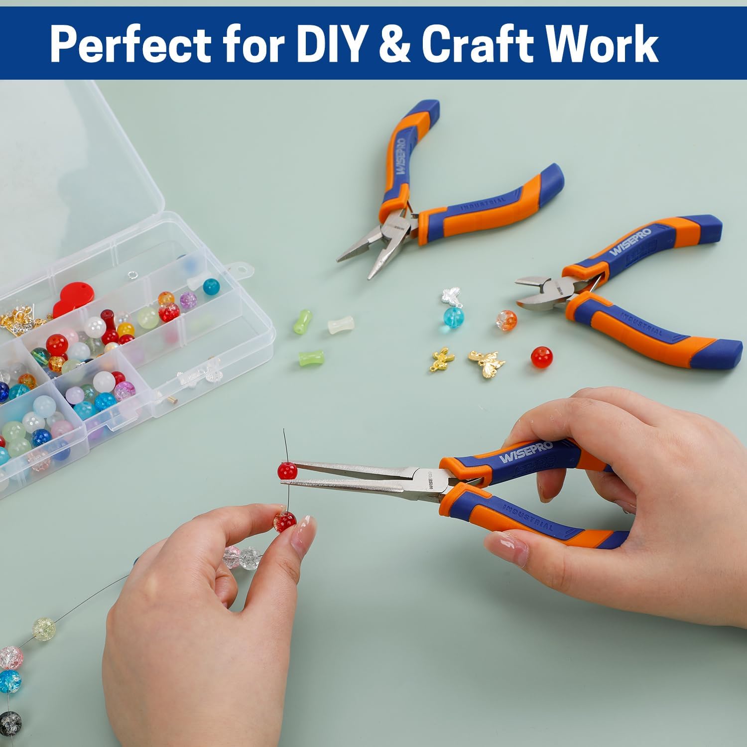 - 3PCS Mini Pliers Set: Includes needle nose pliers, long nose pliers, and diagonal pliers. Available in two color options—orange & blue or pink & yellow. A thoughtful and practical gift for women, DIY lovers, jewelry crafters, model hobbyists, and home repair users.