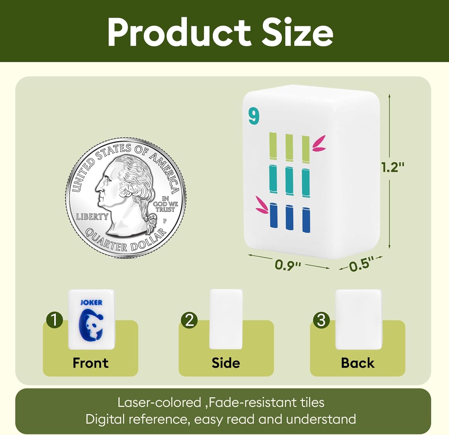 - Include Mahjong Accessories:A mahjong travel bag, 3 dice, mahjong game chips, a mahjong game set manual