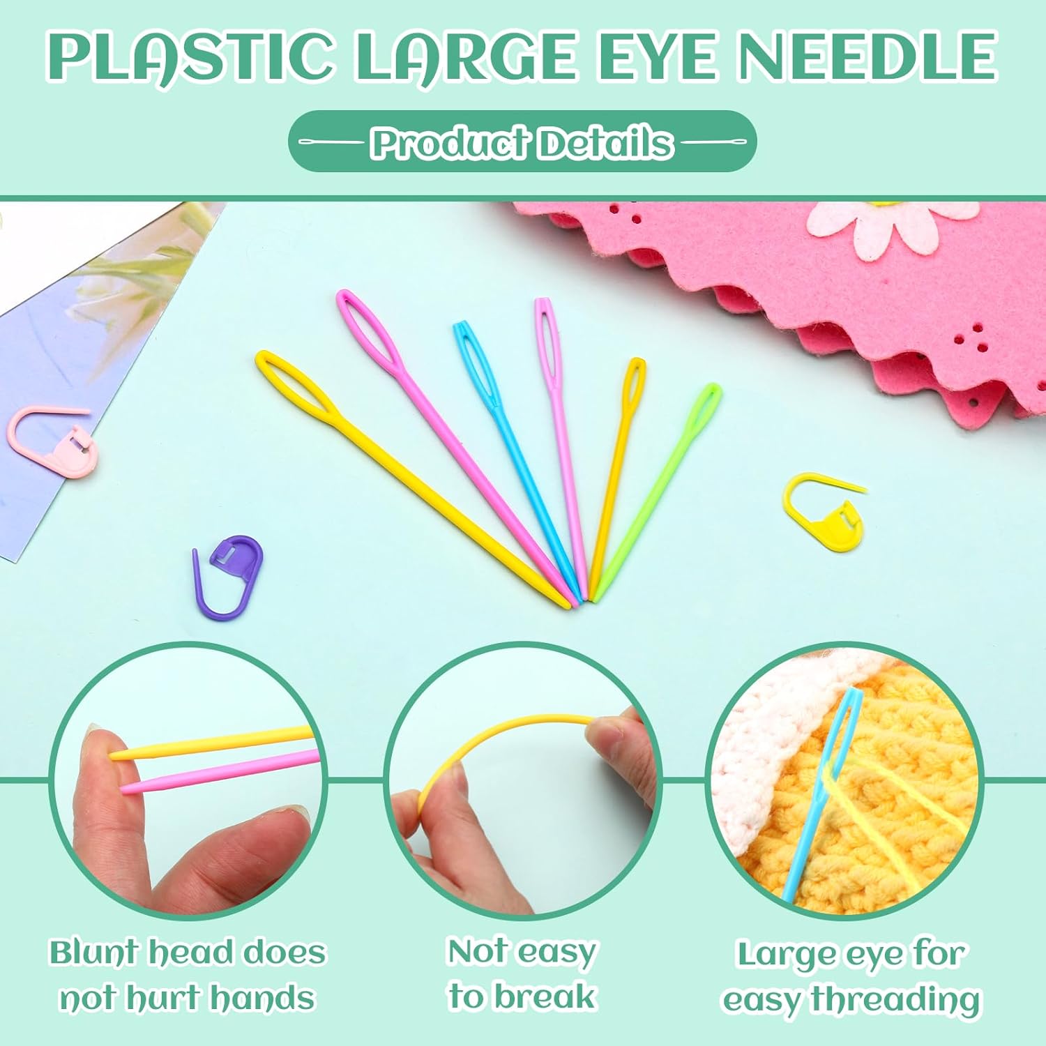 - Practical Crochet Supplies: Locking stitch markers safely, which is helpful for marking the beginning and end of pattern stitches, big eye needles are also practical knitting & crochet supplies.