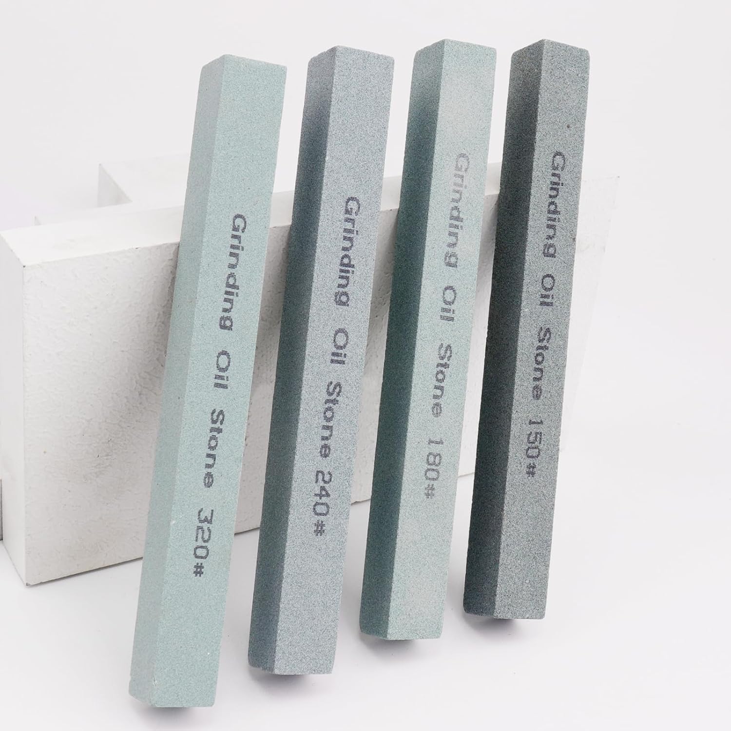 4Pcs Square Sharpening Stone Set -Grits 150#, 180#, 240#, 320# Green Silicon Carbide Honing Whetstone Kit for Moldels, Metal & Knife Cutting Tools (150 * 16 * 16mm)