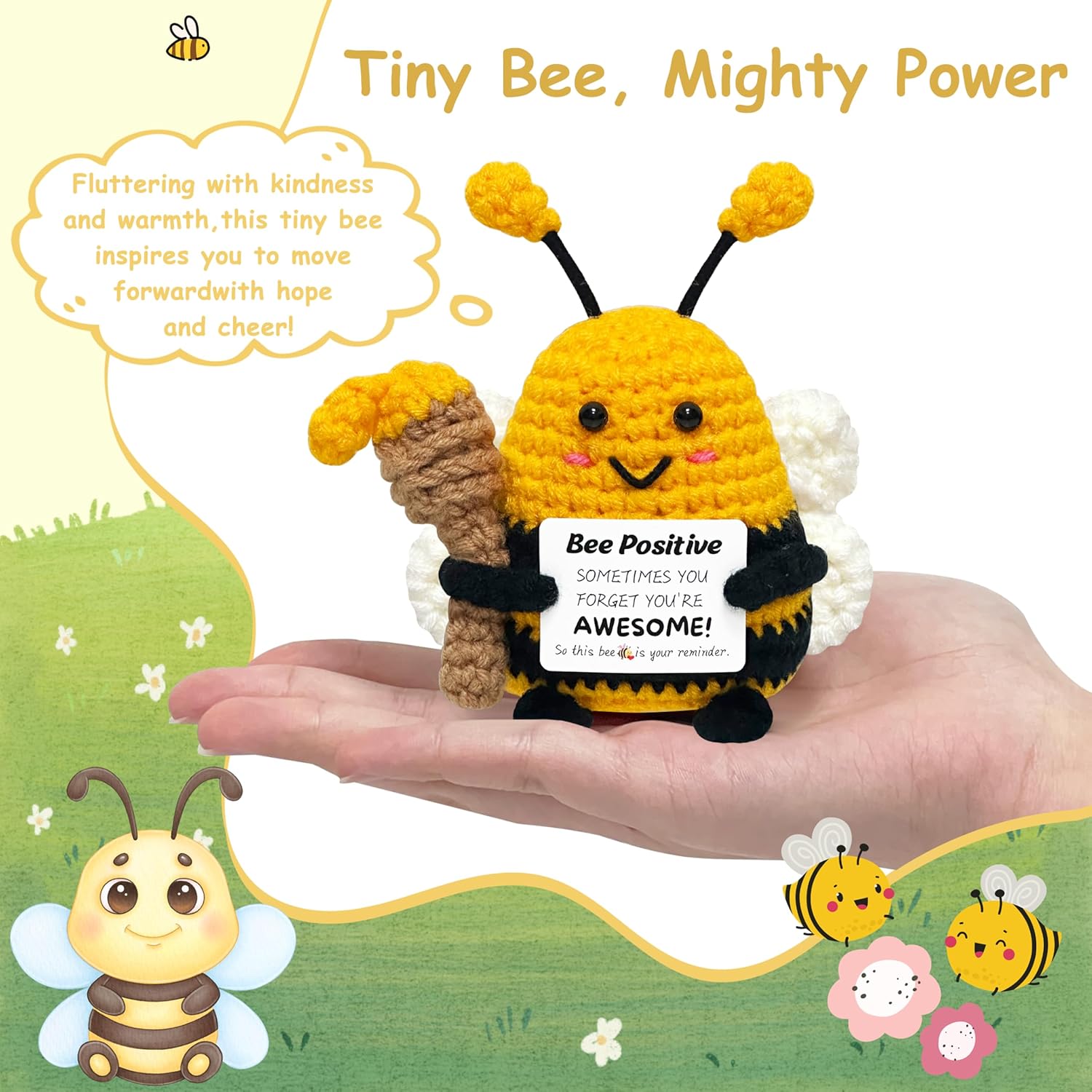 - THIS ITEM IS NOT INTENDED FOR USERS UNDER 12 YEARS OLD. Inspirational Crochet Bee Gifts: This hand-stitched crochet bee comes with a sweet reminder card: "Sometimes you forget you're awesome, so this bee is your reminder." Carry it with you or keep it on your desk—whenever you need a boost, this charming bee and its heartfelt message will inspire you to stay positive and tackle each day with enthusiasm. Perfect for bee lovers or anyone who needs a daily dose of positivity